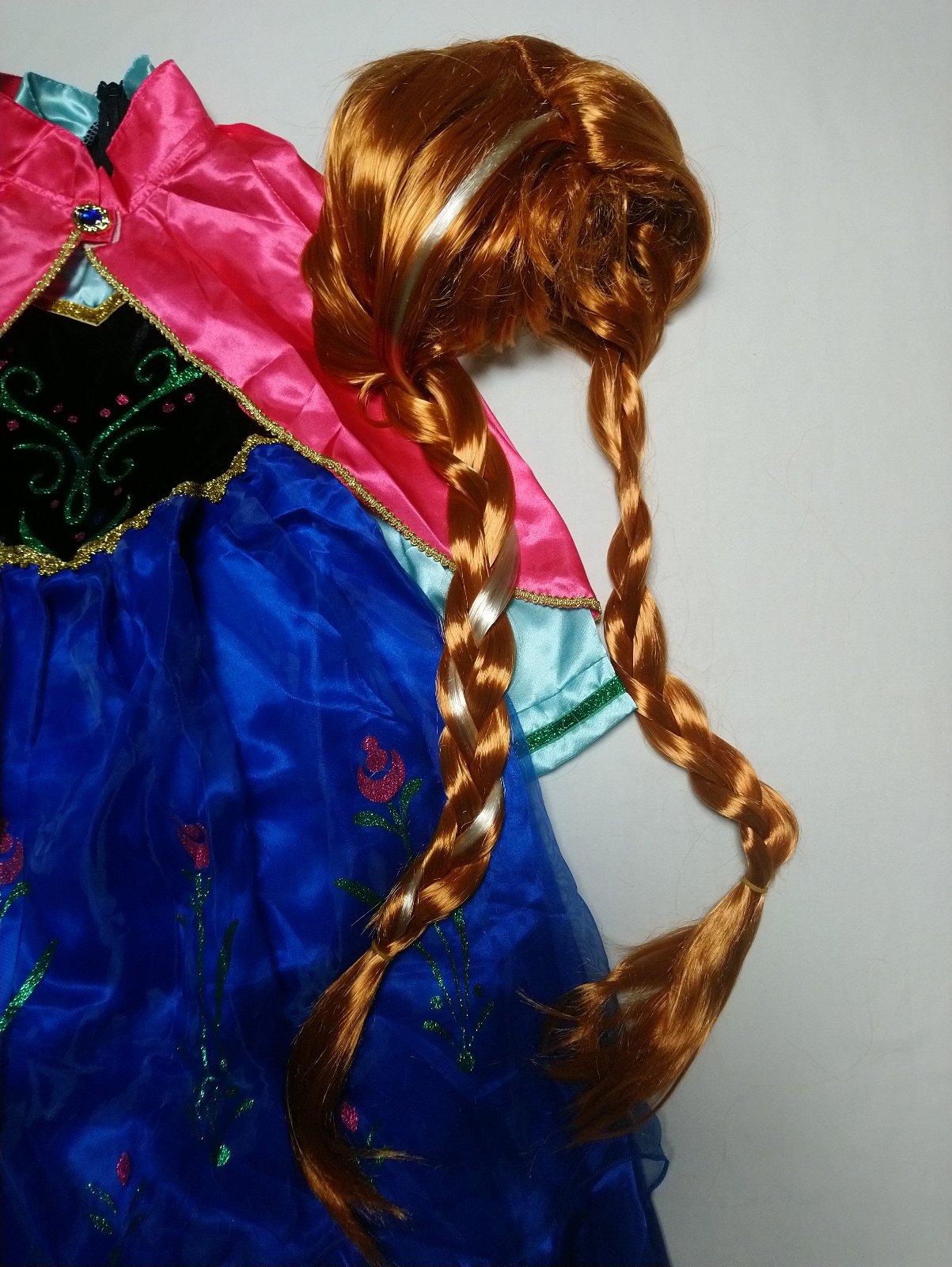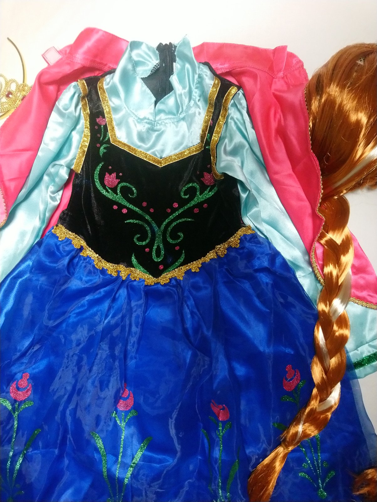 Nový Kostým Anna šaty pelerína, mega set, vlasy obsahuje: