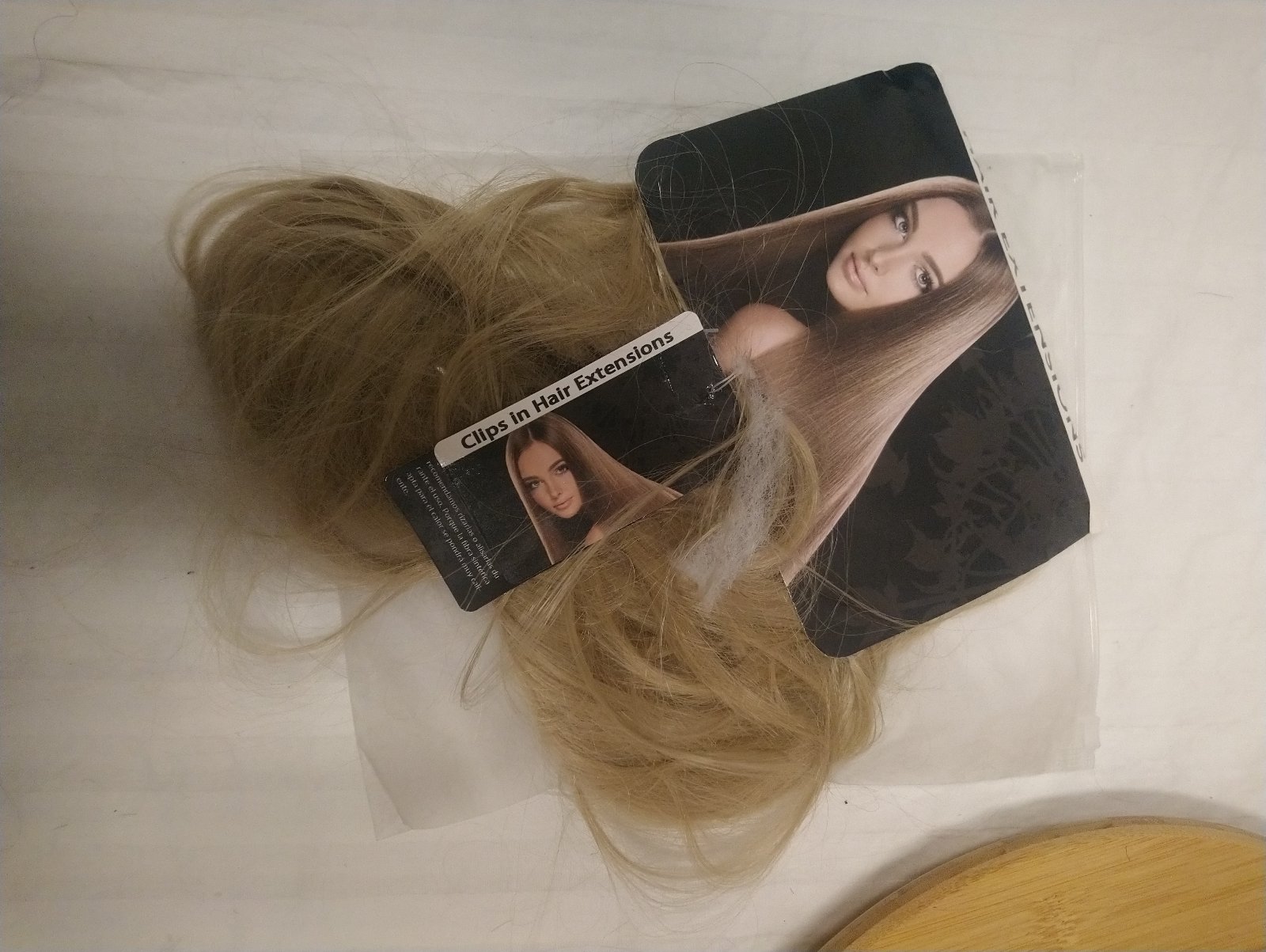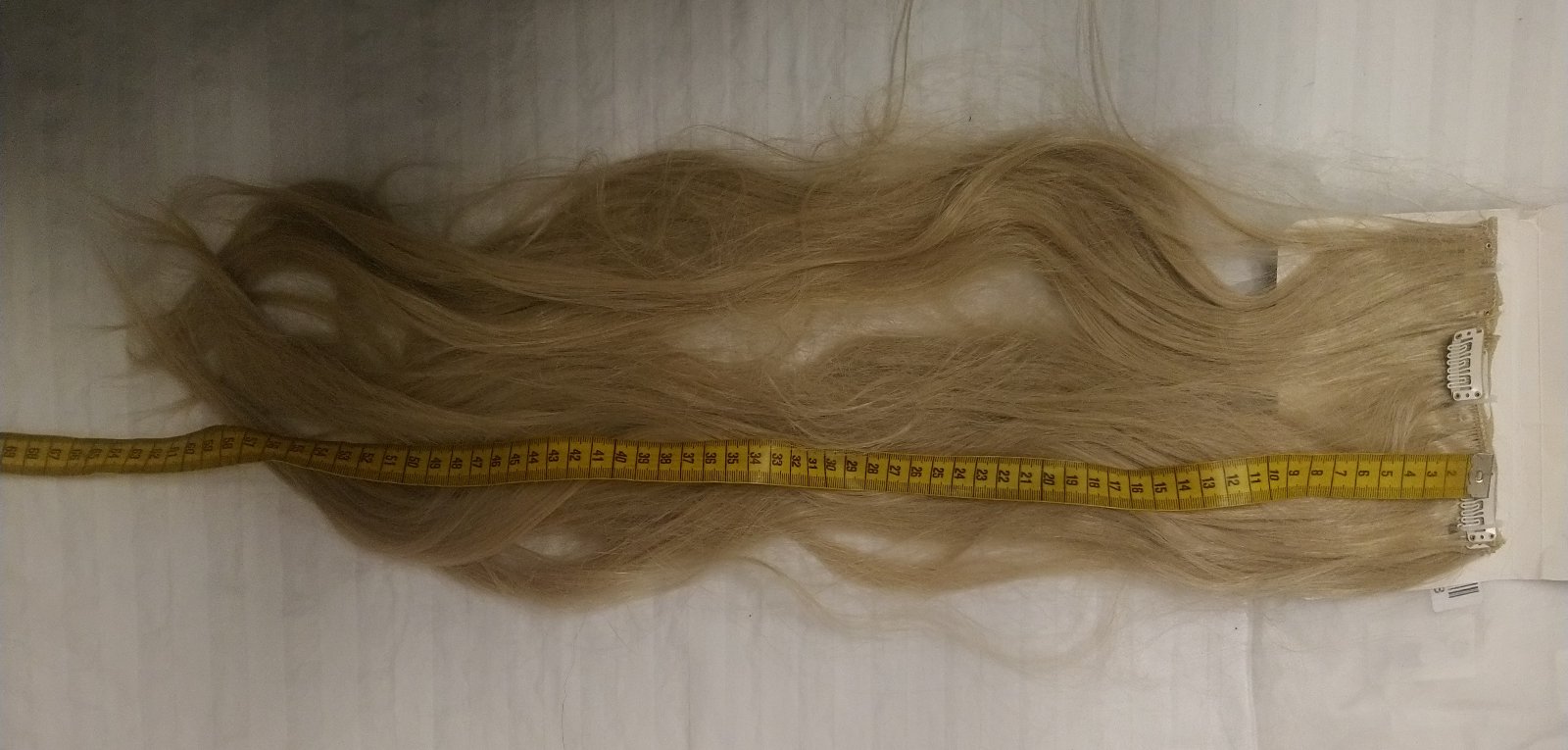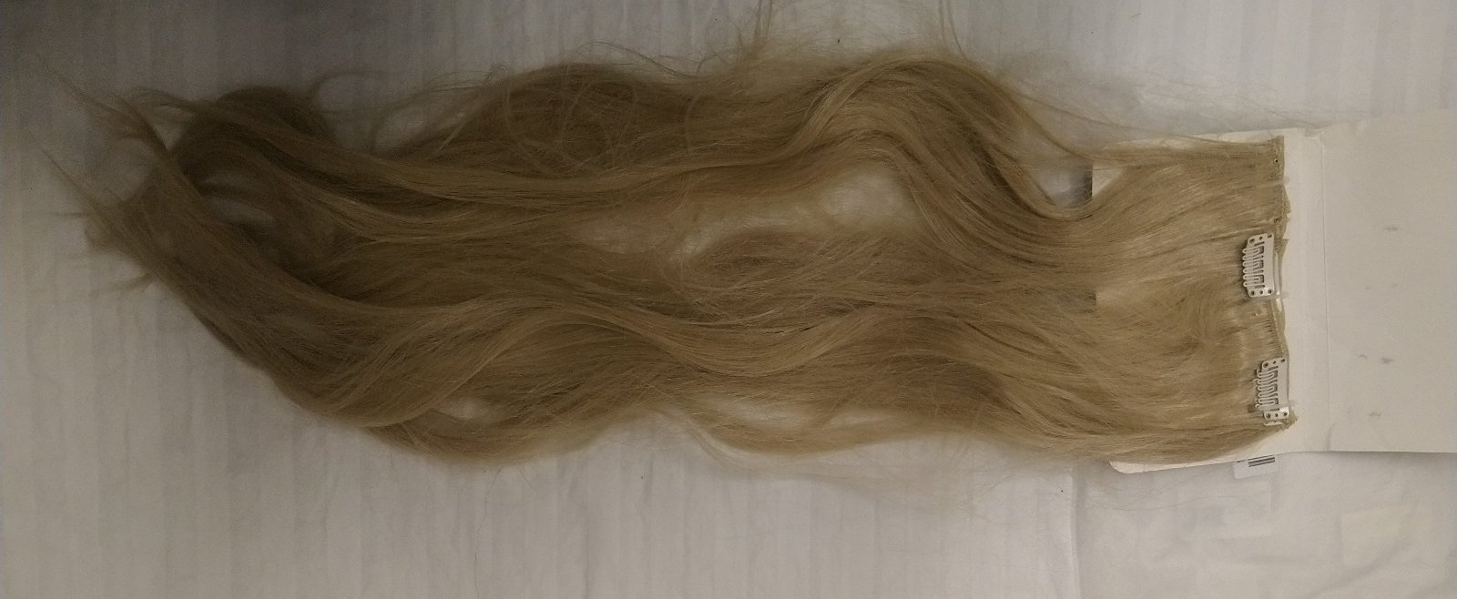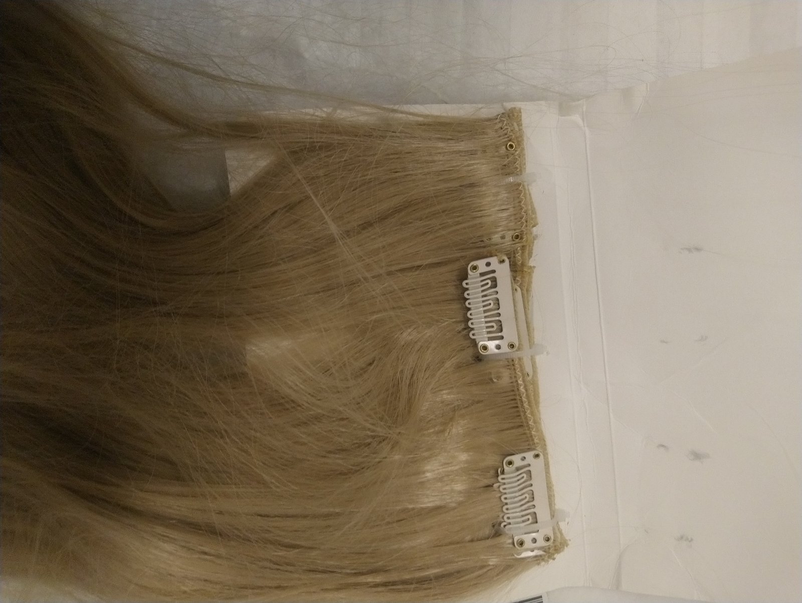 nový Príčesok s klipy na predlžovanie vlasov, pripevnenie klipy- "hrebenčeky", dĺžka cca 63 cm, vlasy farby "špinavý" blond,