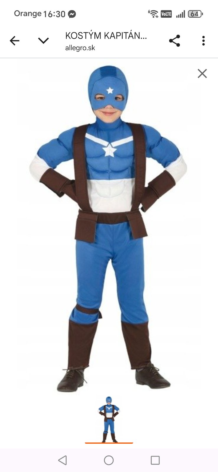 Veľkosť 5-6 rokov, 2 diely, spolu aj s maskou. Dlžka 67cm