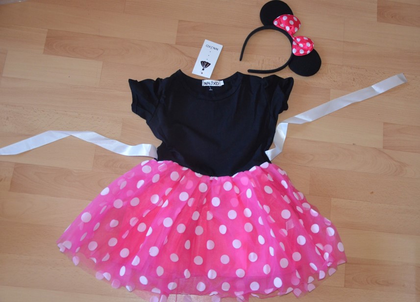 Nový nenosený kostým šaty + čelenka s uškami, bohato nariasena tutu sukňa, oblubena postavicka rozprávka Disney myška Minnie Mause Mickey.