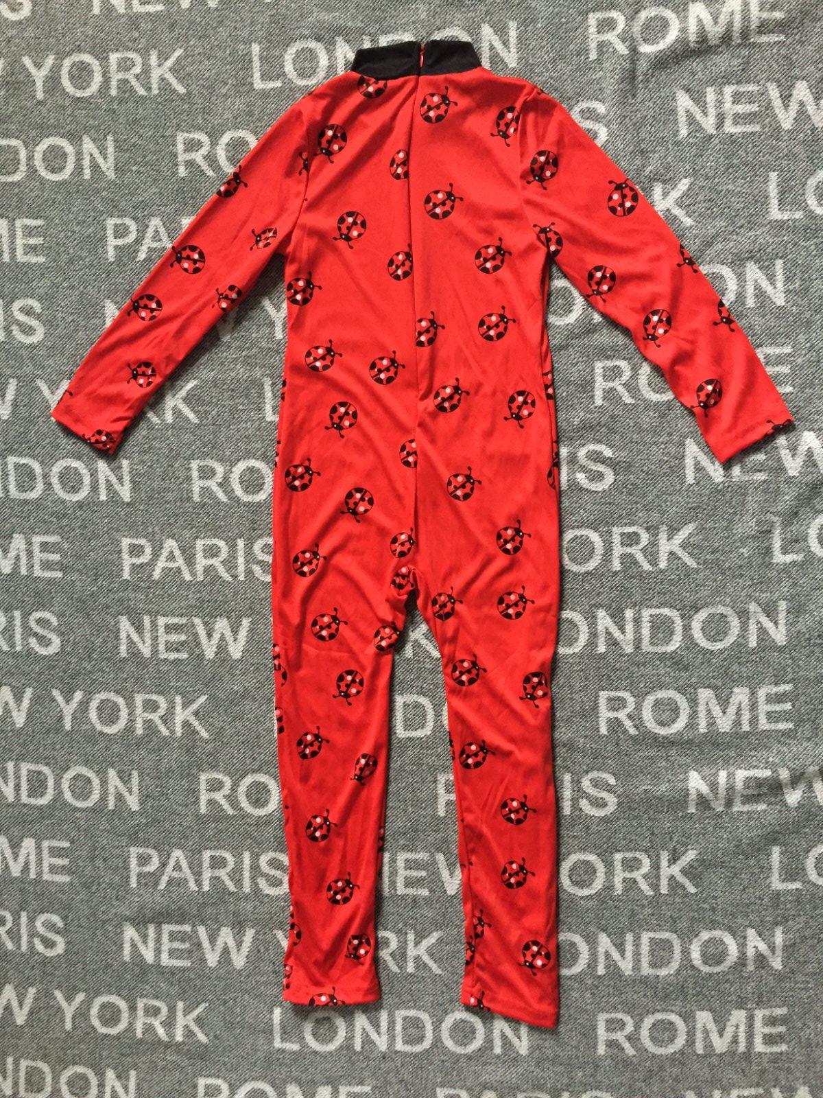 Beruska je v dobrom stave. Nema ziadne chyby. Kostym sadne chudemu dievcatku. Velkost 110-116. Dlzka je 98cm, rukav 41cm, sirka cez prsia 31cm, rozkrok je 47cm. Plus skraboska, rukavice a kabelka.