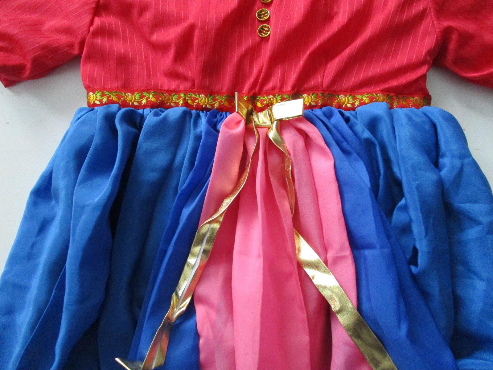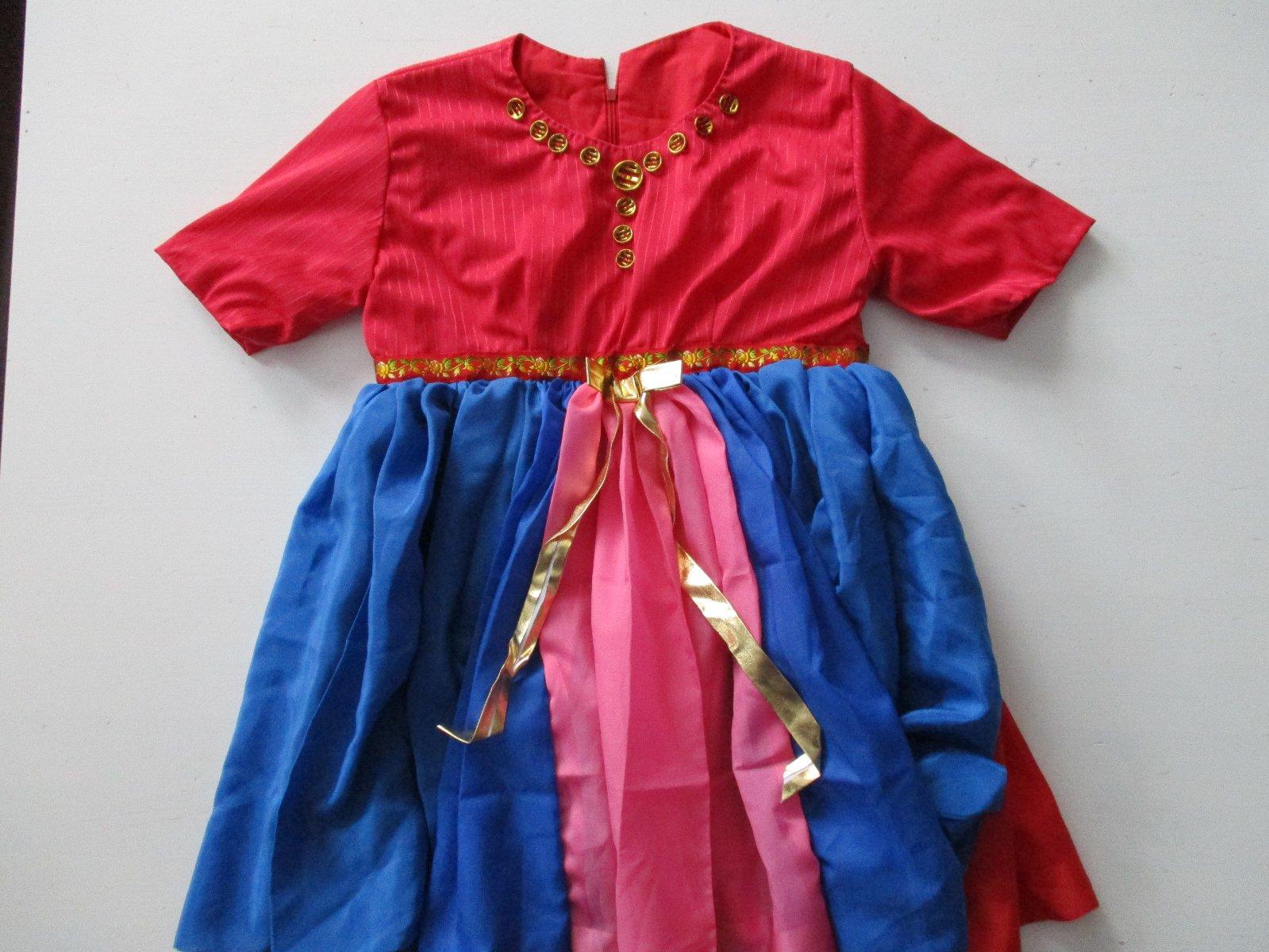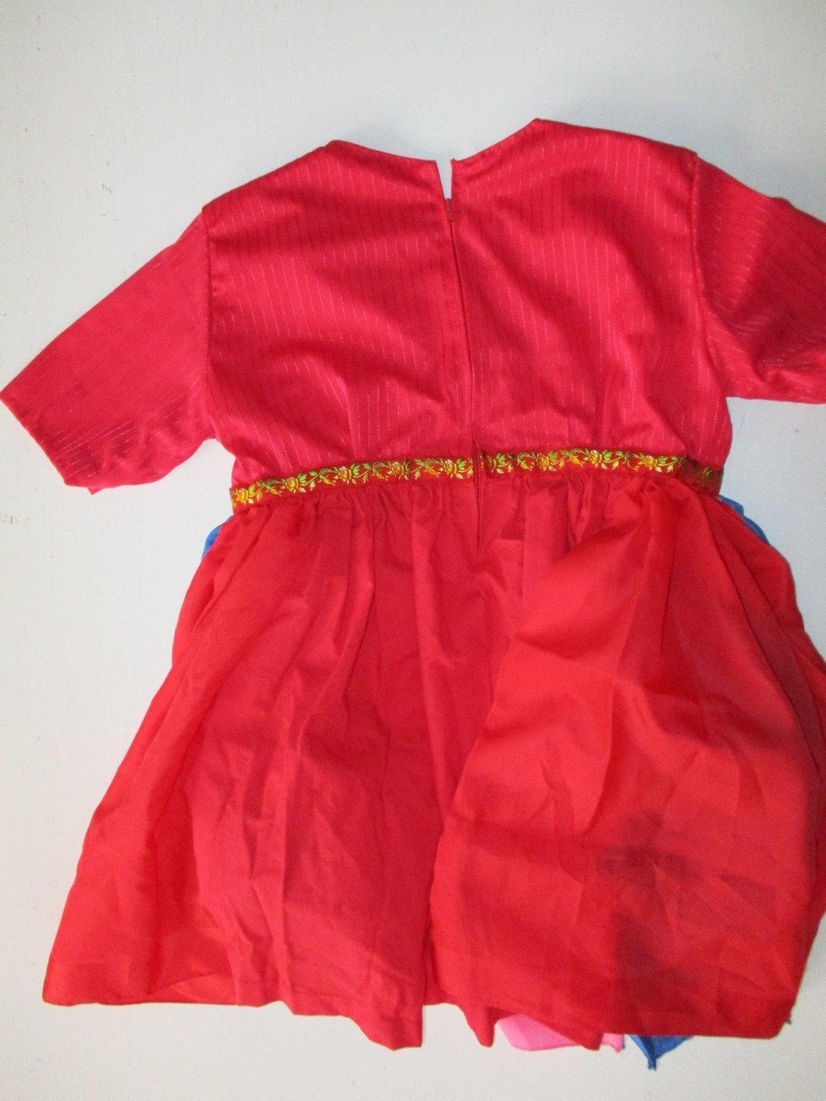vek ccca 4-8 rokov podľa postavy, výška šiat od ramena nadol 65, ramená 33, pod pazuchami cca 38cm, nemajú poškodenie, bežné nosenie použité na dvoch karnevaloch