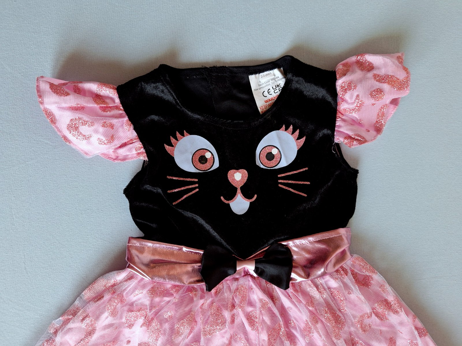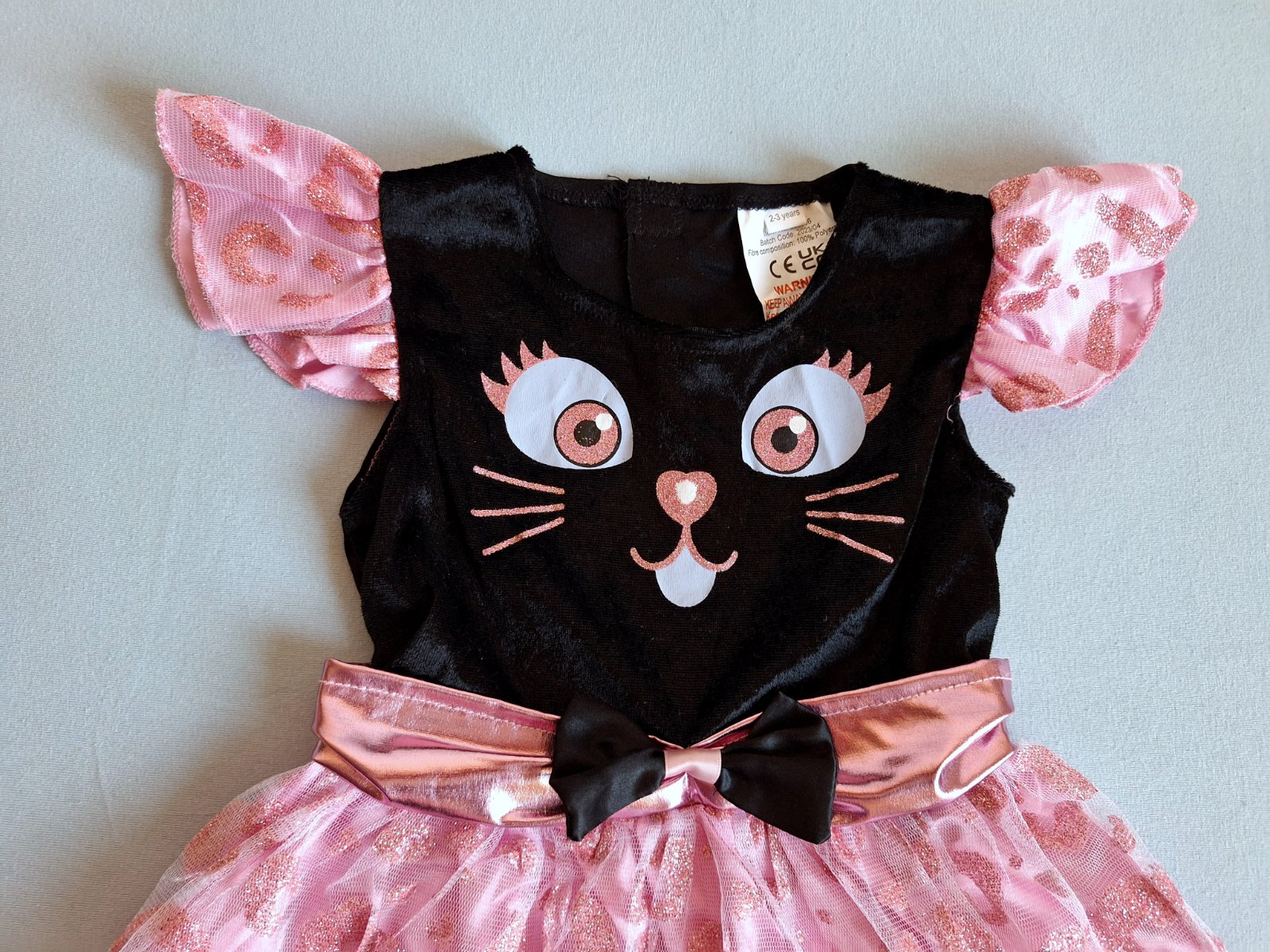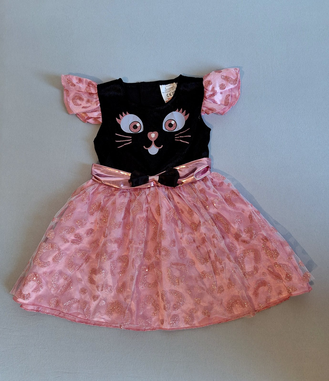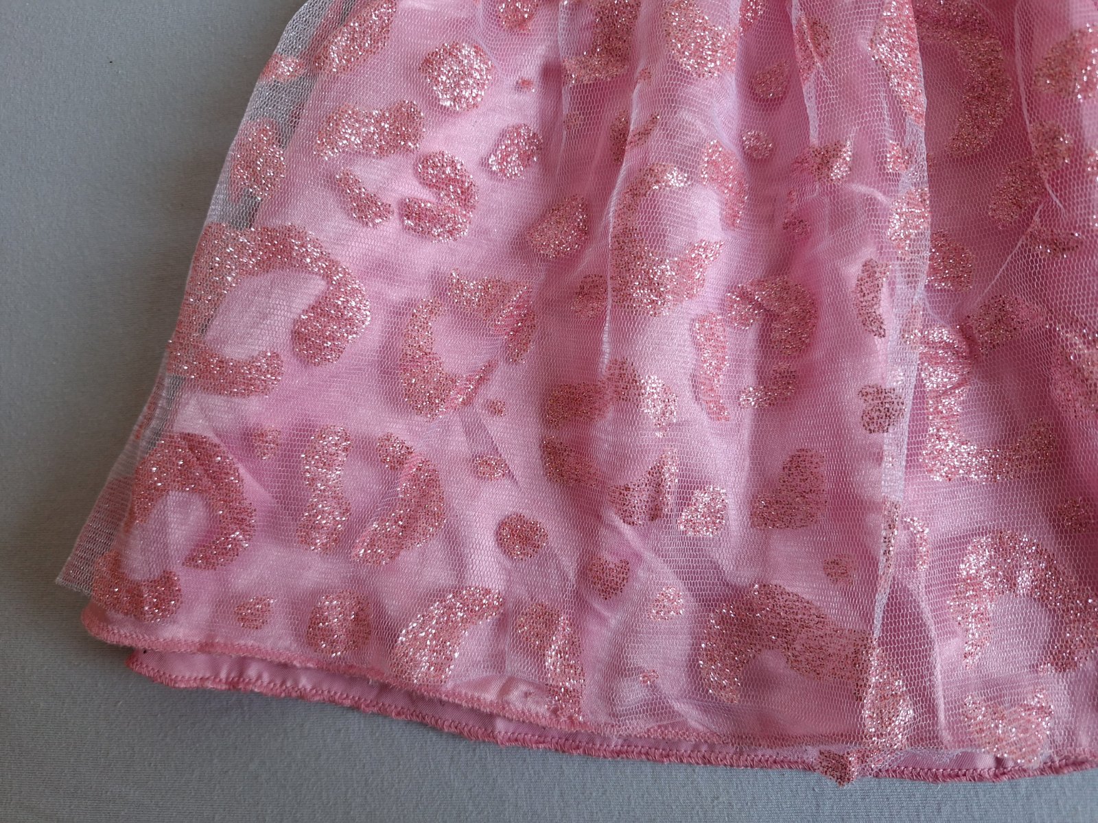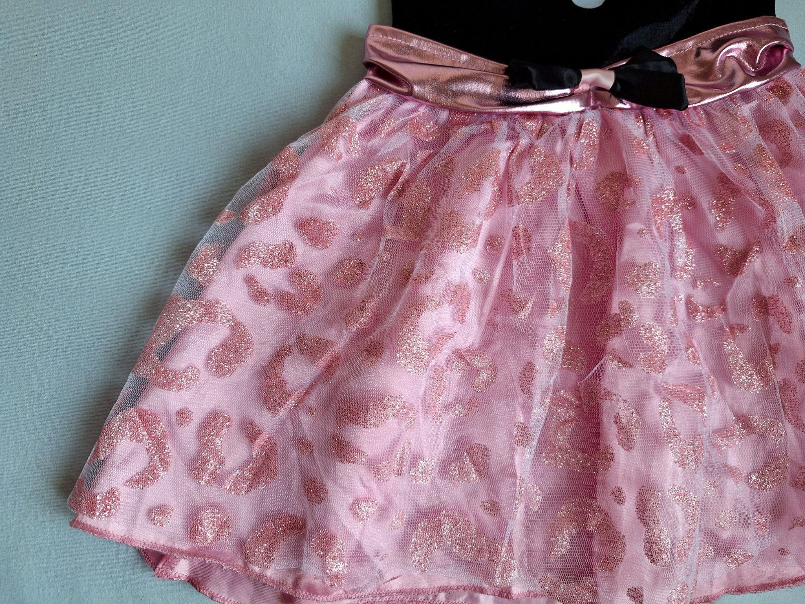Stav: top stav, bez poškodení a známok nosenia. Živôtik zamatový, elastický, v páse guma. Sukňa tylová, bohato riasená. Na rukávoch a na sukni výrazne trblietavý vzor.