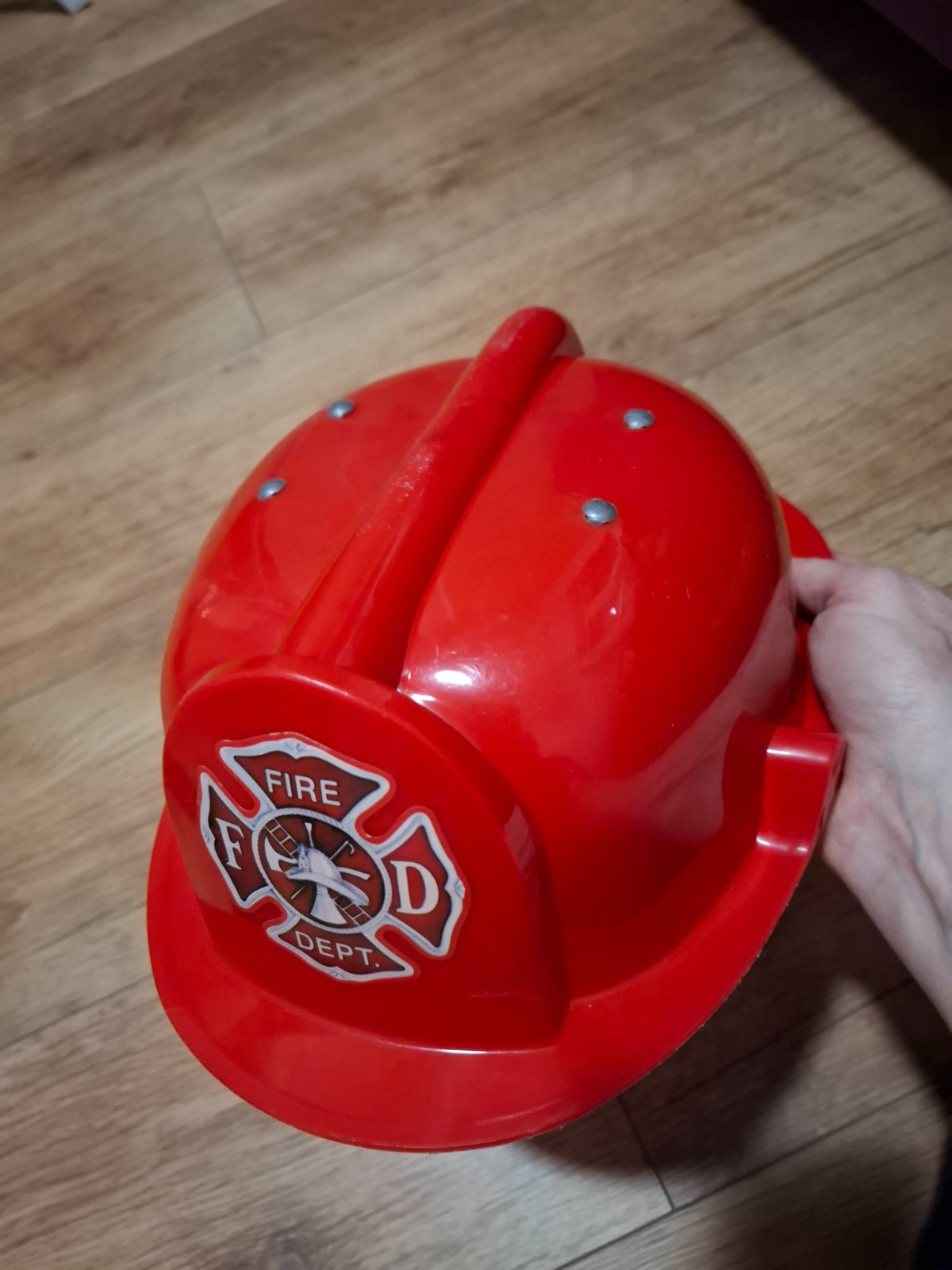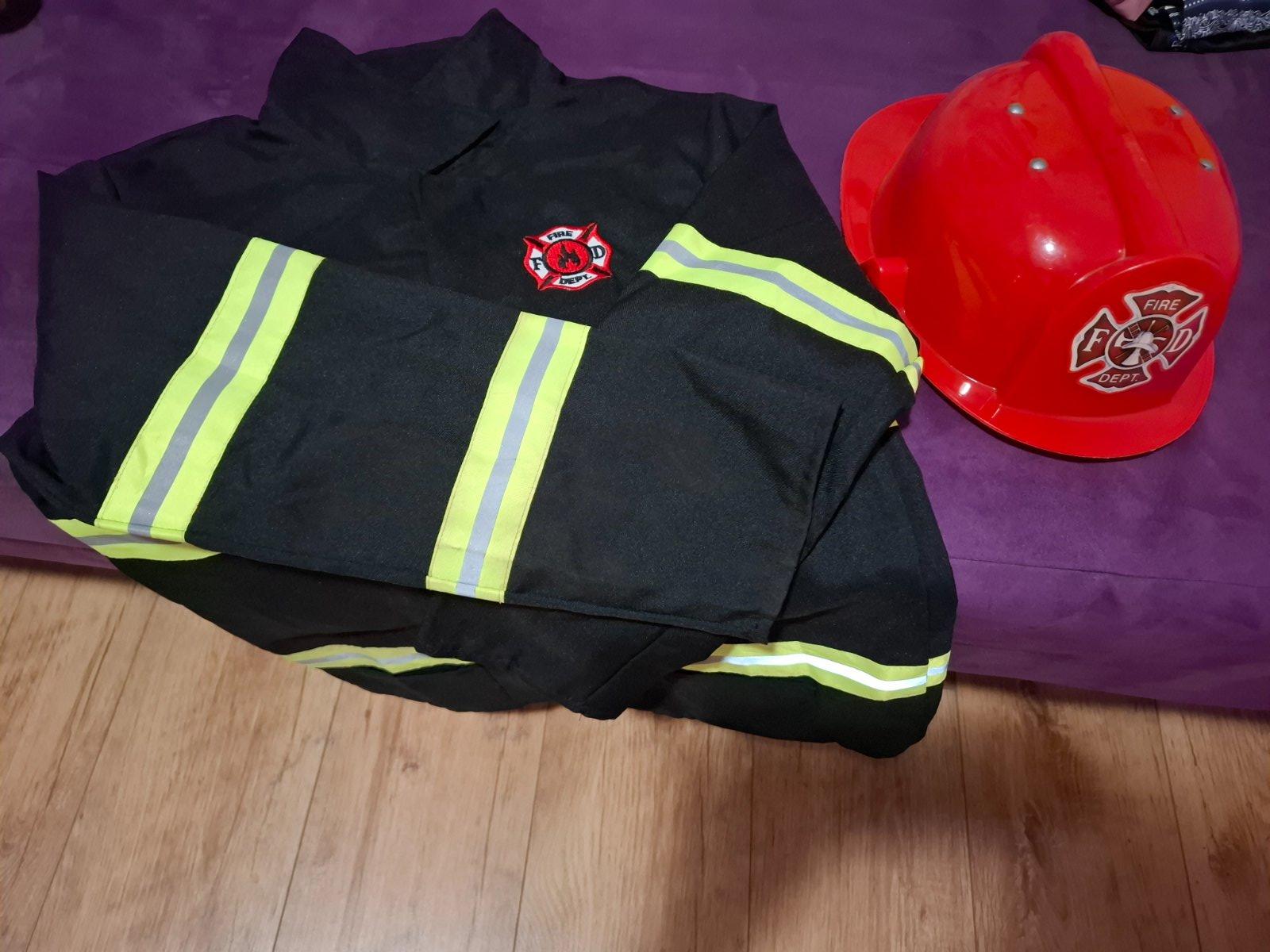 Predám nie úplný hasičský kostým veľ. 158, pozostávajúci z hasičskej blúzy a helmy. Zapínanie helmy je do učitej miery prispôsobiteľné, my sme ho doplnili ešte o popruh pod bradou, aby pri pohybe nepadala z hlavy (viď foto). Blúza je skôr z tenšieho materiálu.