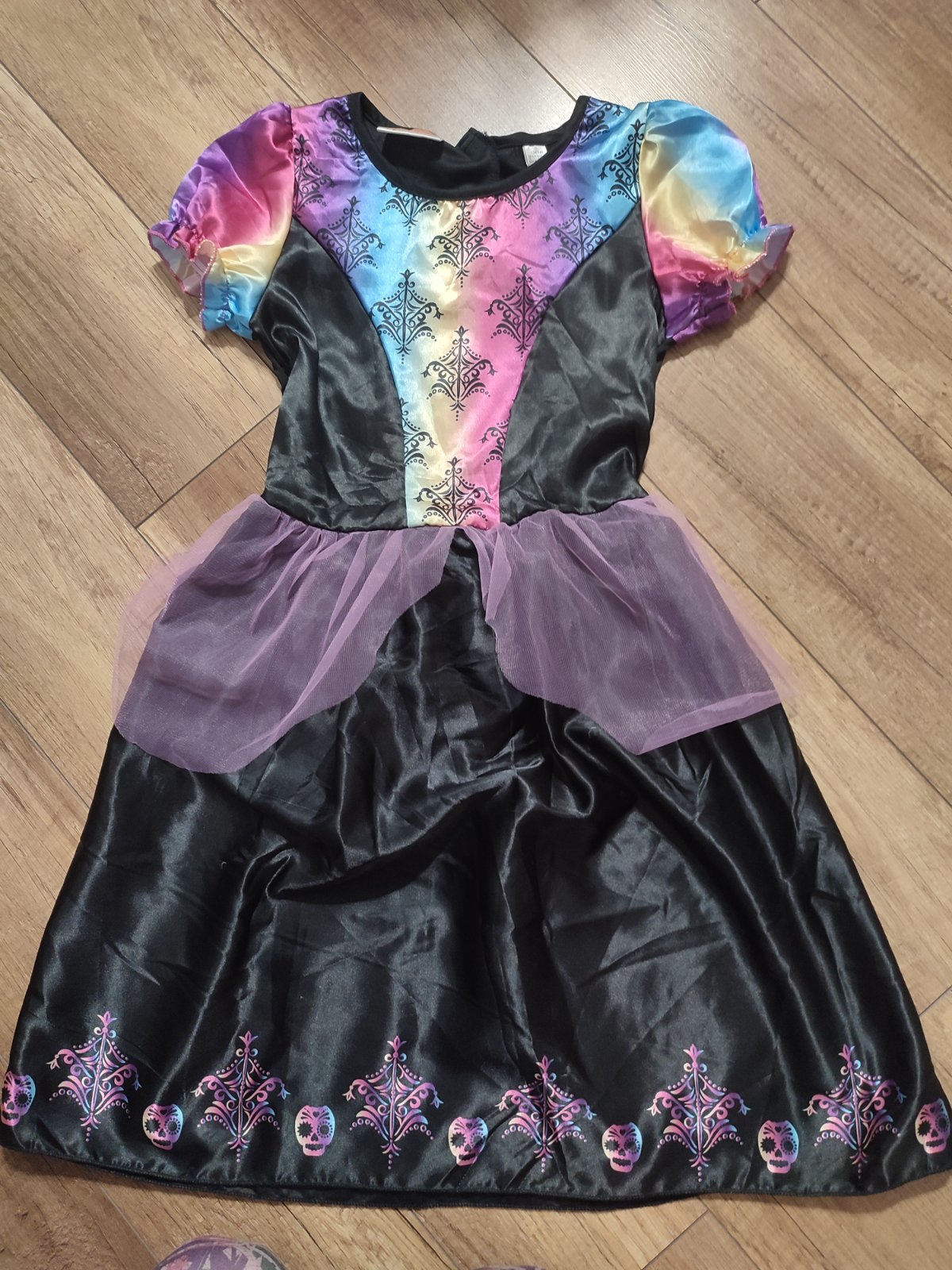 Šaty na karneval / halloween. Sedia na veľkosť 116/122 (5 - 7 rokov). Boli pár krát oblečené, ale na spodnom leme majú poškodenie (viď. posledná foto). Inak sú v dobrom stave.