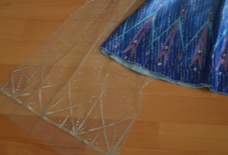 Vrch je elasticky pekne sa prisposobi, rukaviky tiez elasticke, krasne zdobene, spodok siat strihany do A pekne ukaze obleceny. Vzadu vlecka zavoj + cca 18 cm za satami.