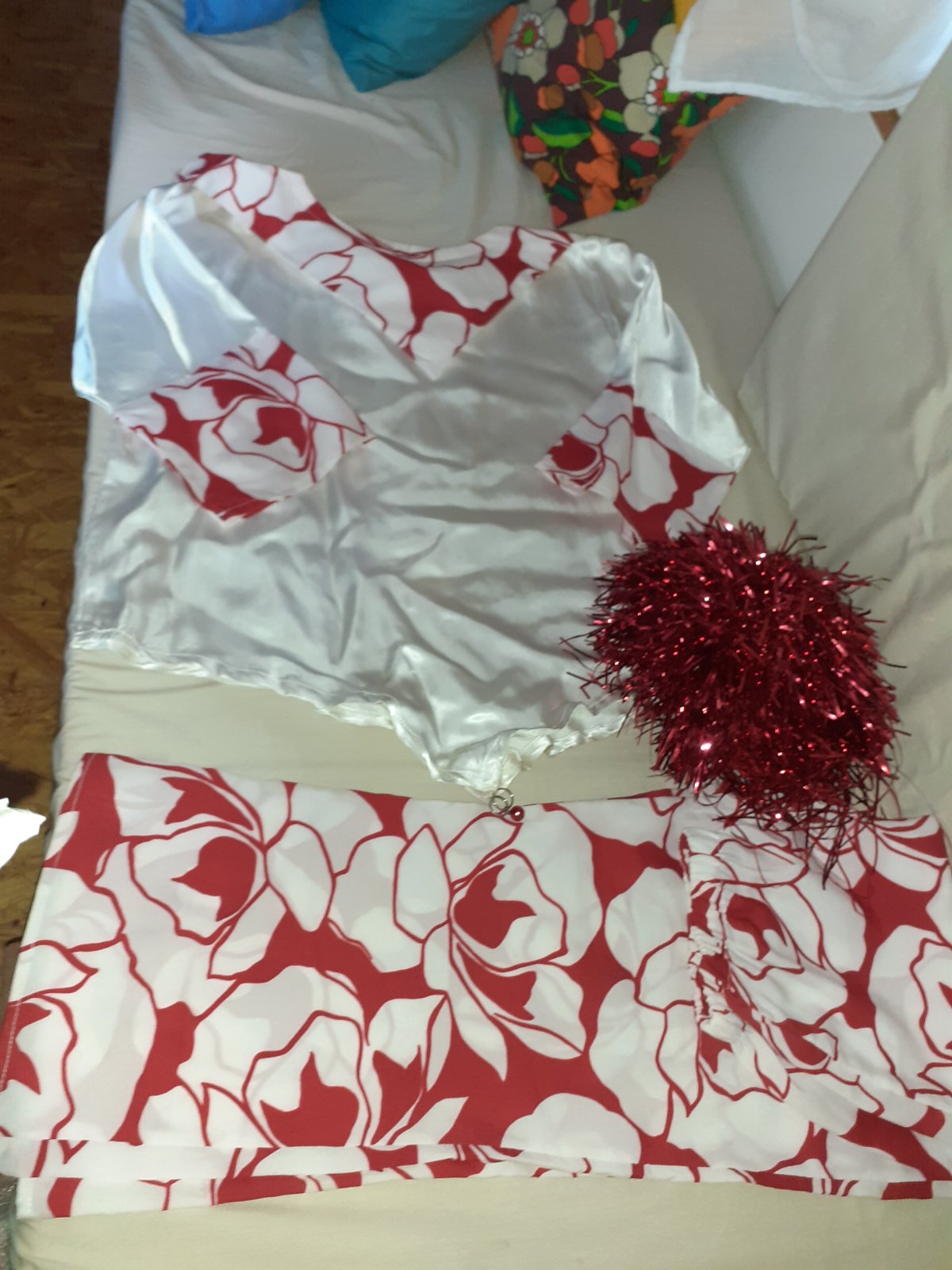 Vlastná výroba. Na cípe rolnička. Vlasy- parochňa sú kúpené. Nohavice som deťom podhýnala podľa potreby ručne. Cena spolu