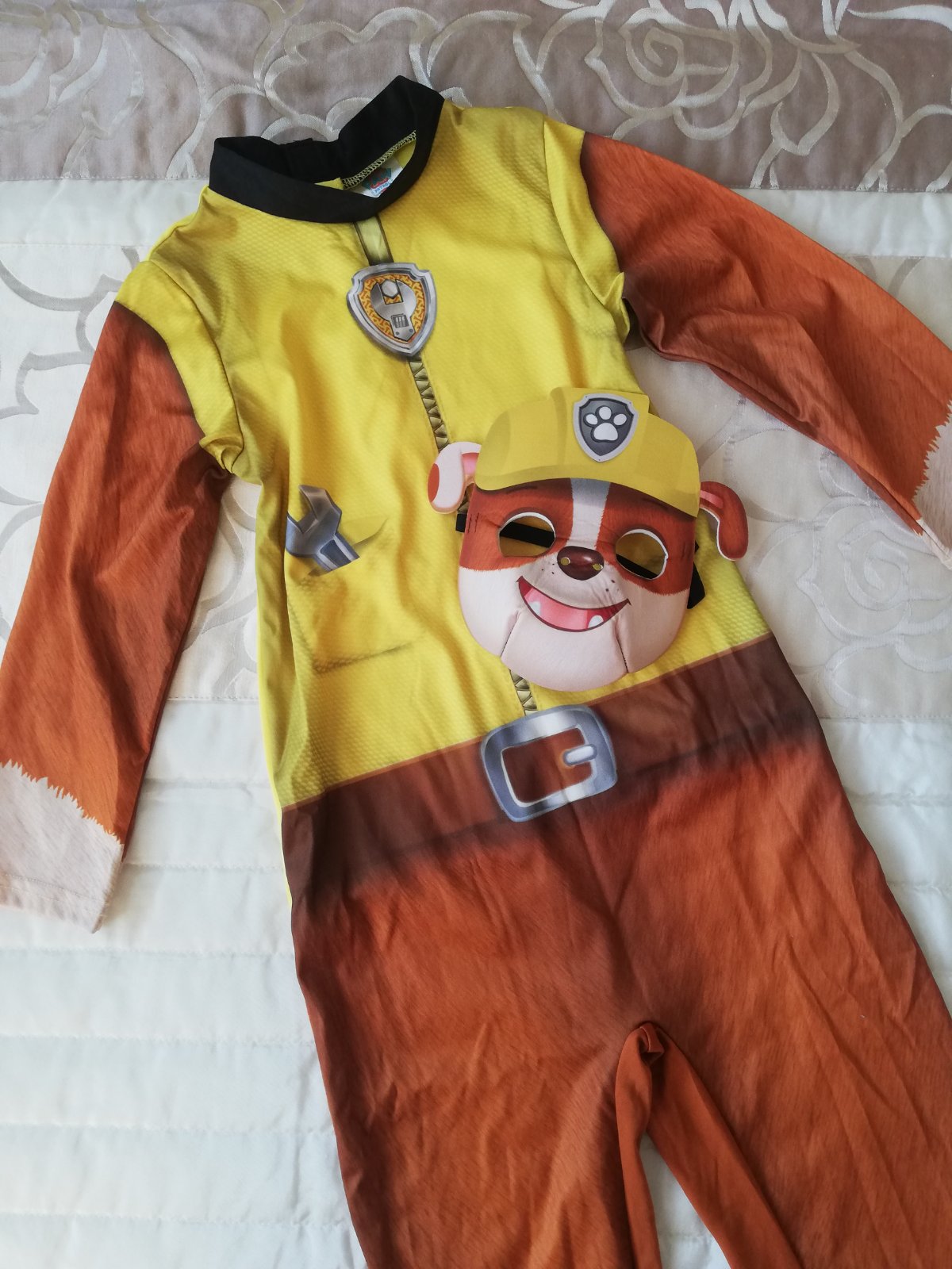 1x použitý karnevalový kostým, Labková patrola - Rubble. Ako nový, bez poškodení. Veľkosť 4-6 rokov.