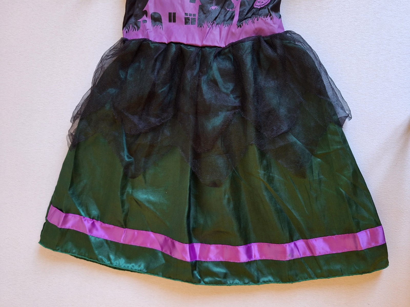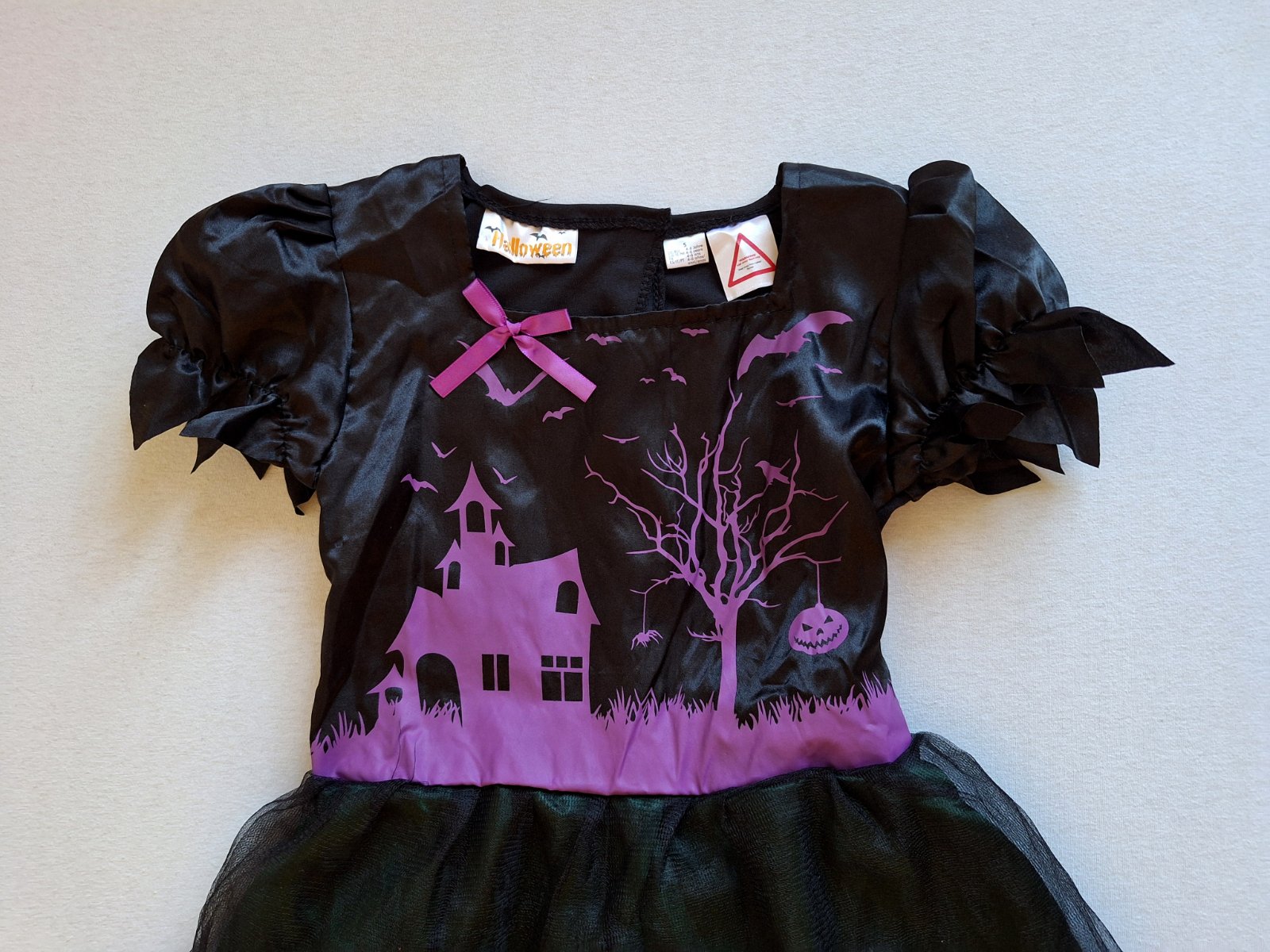 Stav: top stav, bez poškodení. Živôtik elastický, nazberkaný do gumičiek, zdobené sieťovanou organzou s motívom pavučiny a flitrami. celé sú kombinované lesklým fialový brokátom.