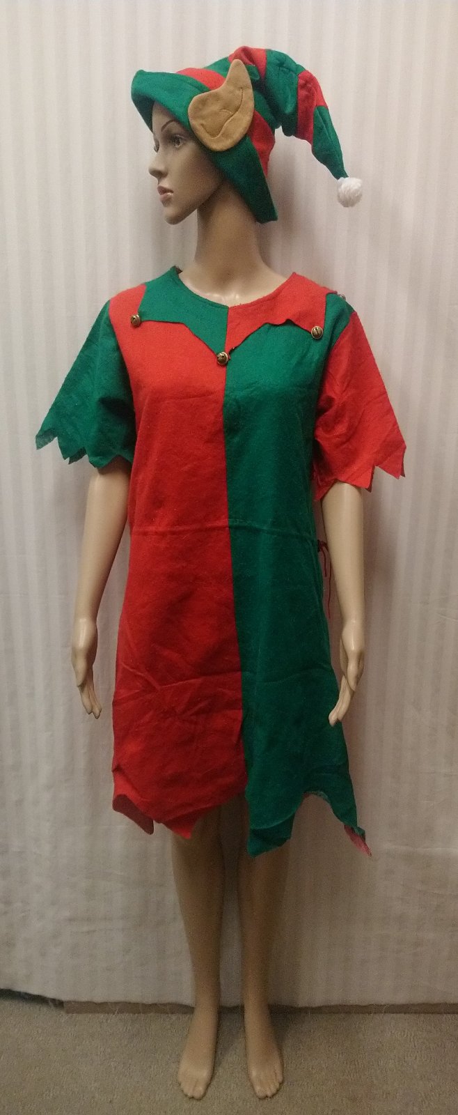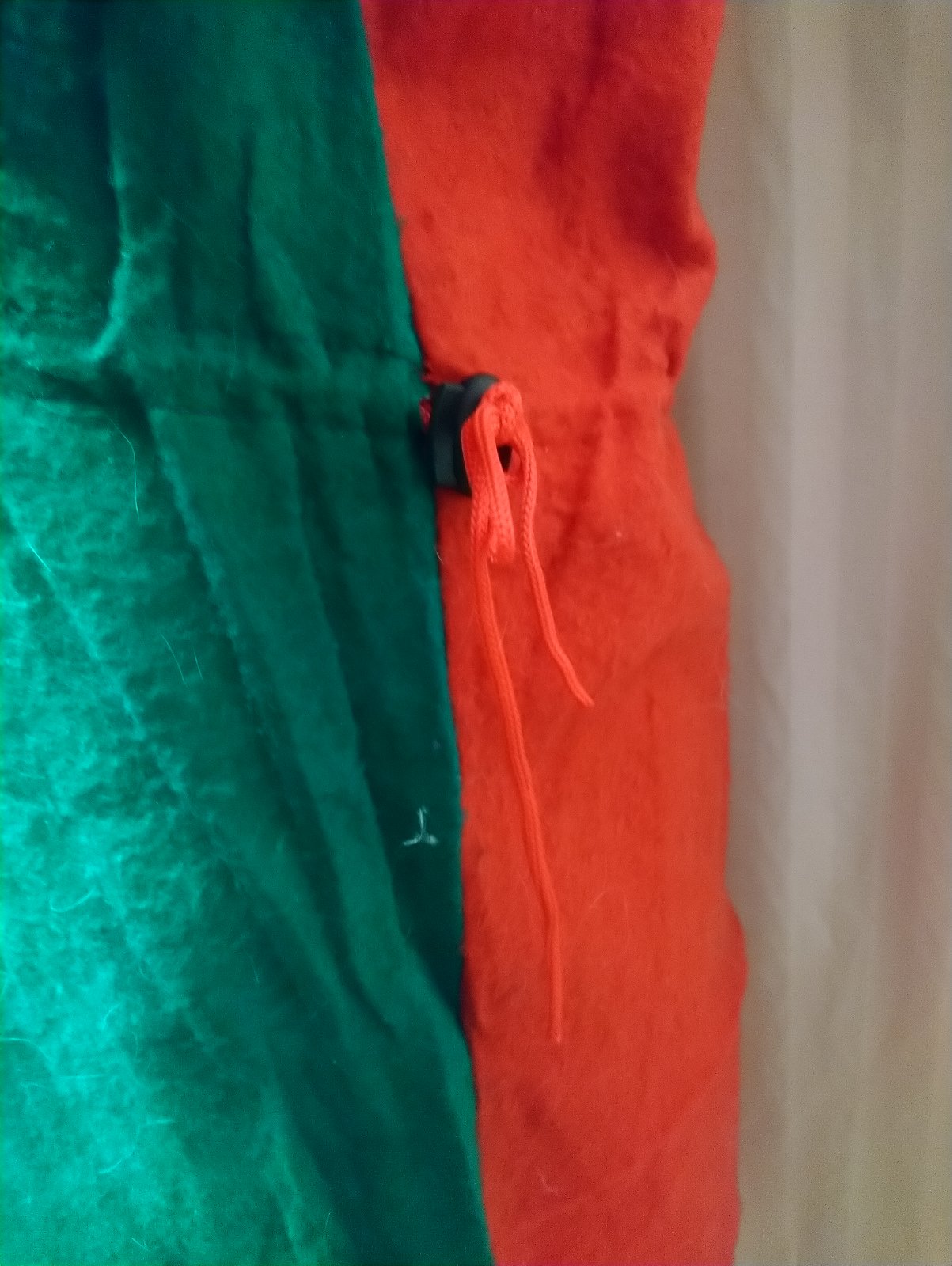 1. zeleno červené šaty, v páse šnúrka na zatiahnutie, vzadu zips, ozdobené rolničkami - vydávajú zvuk,