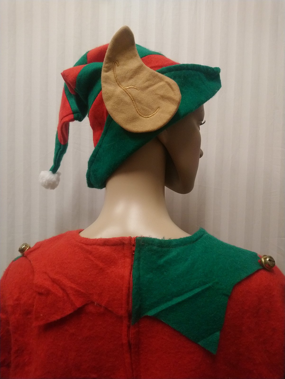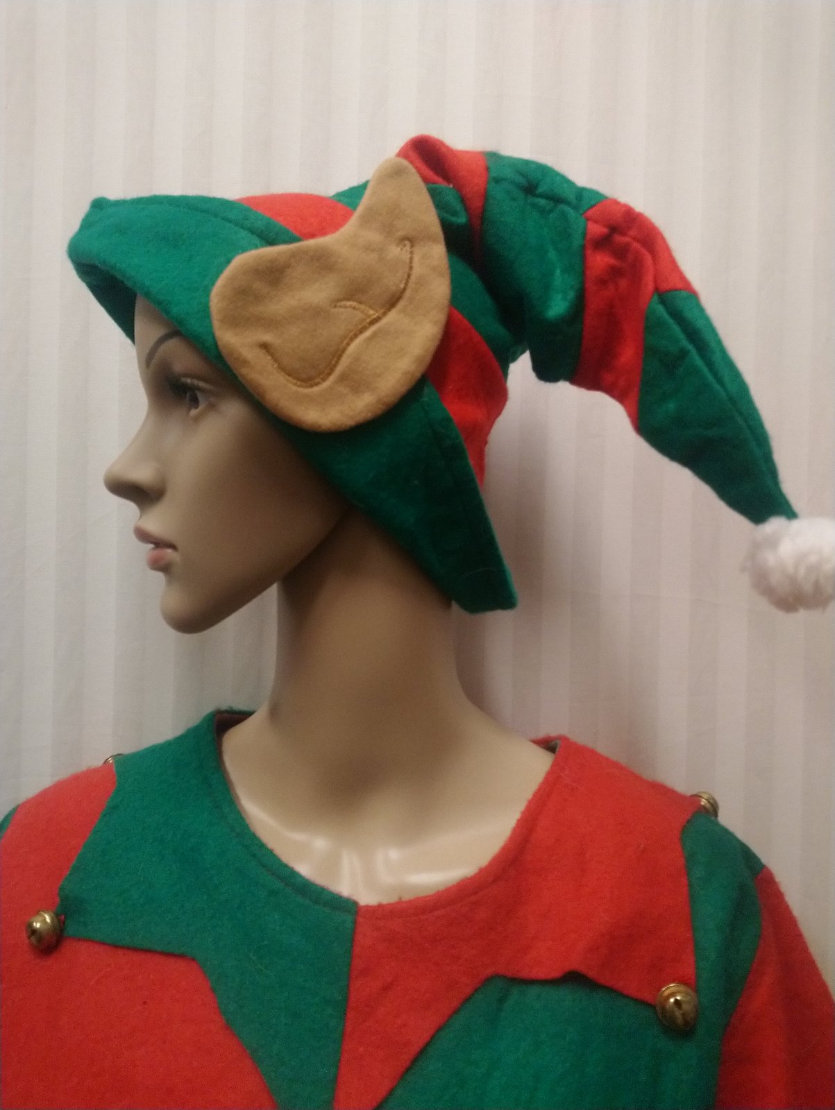 2. červeno zelená elfovská čiapka ozdobená elfovskými ušami,