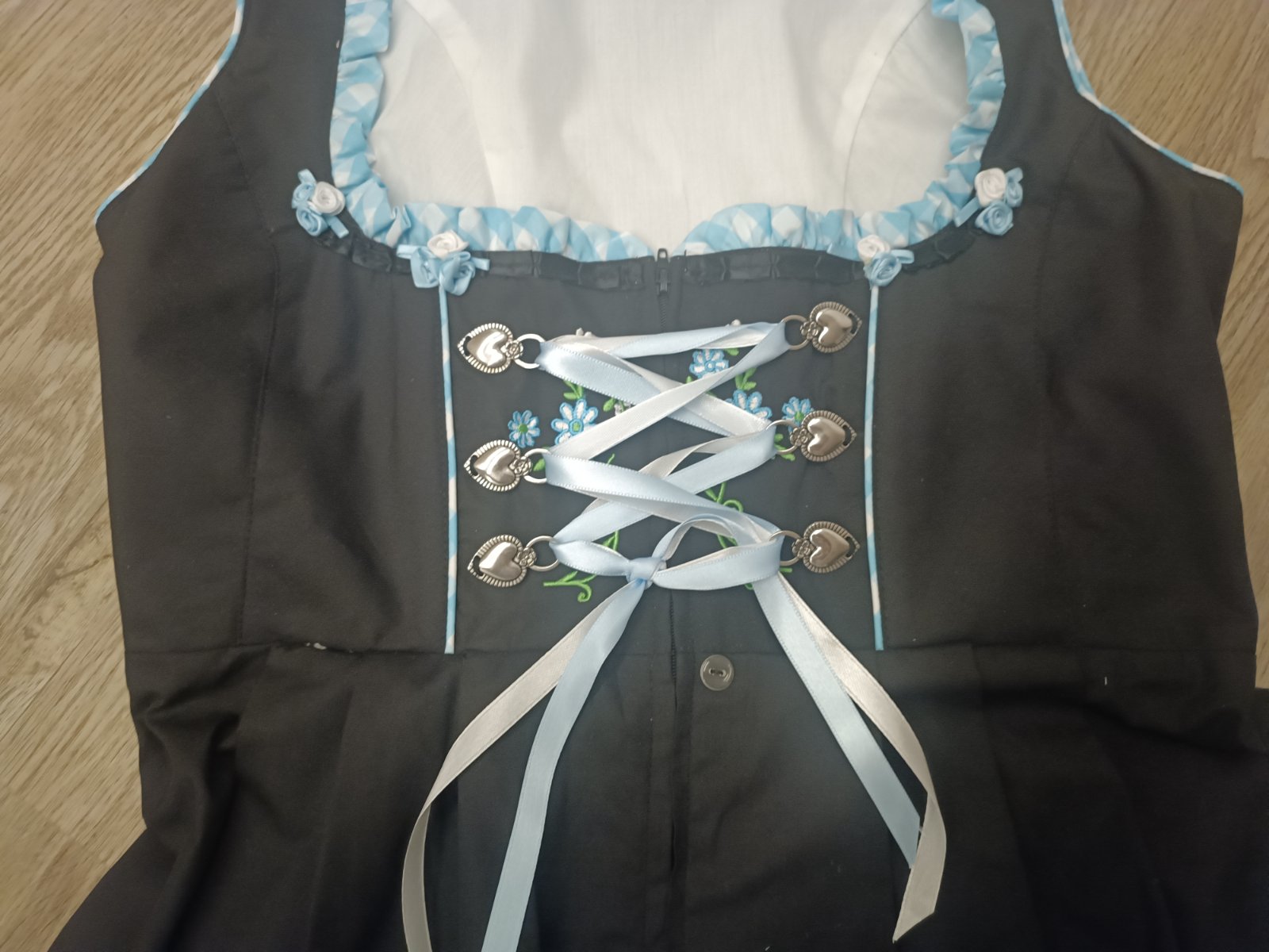 Pozostáva zo šiat a zásterky zapína sa vpredu na zips, predná časť je zdobená stužkou.