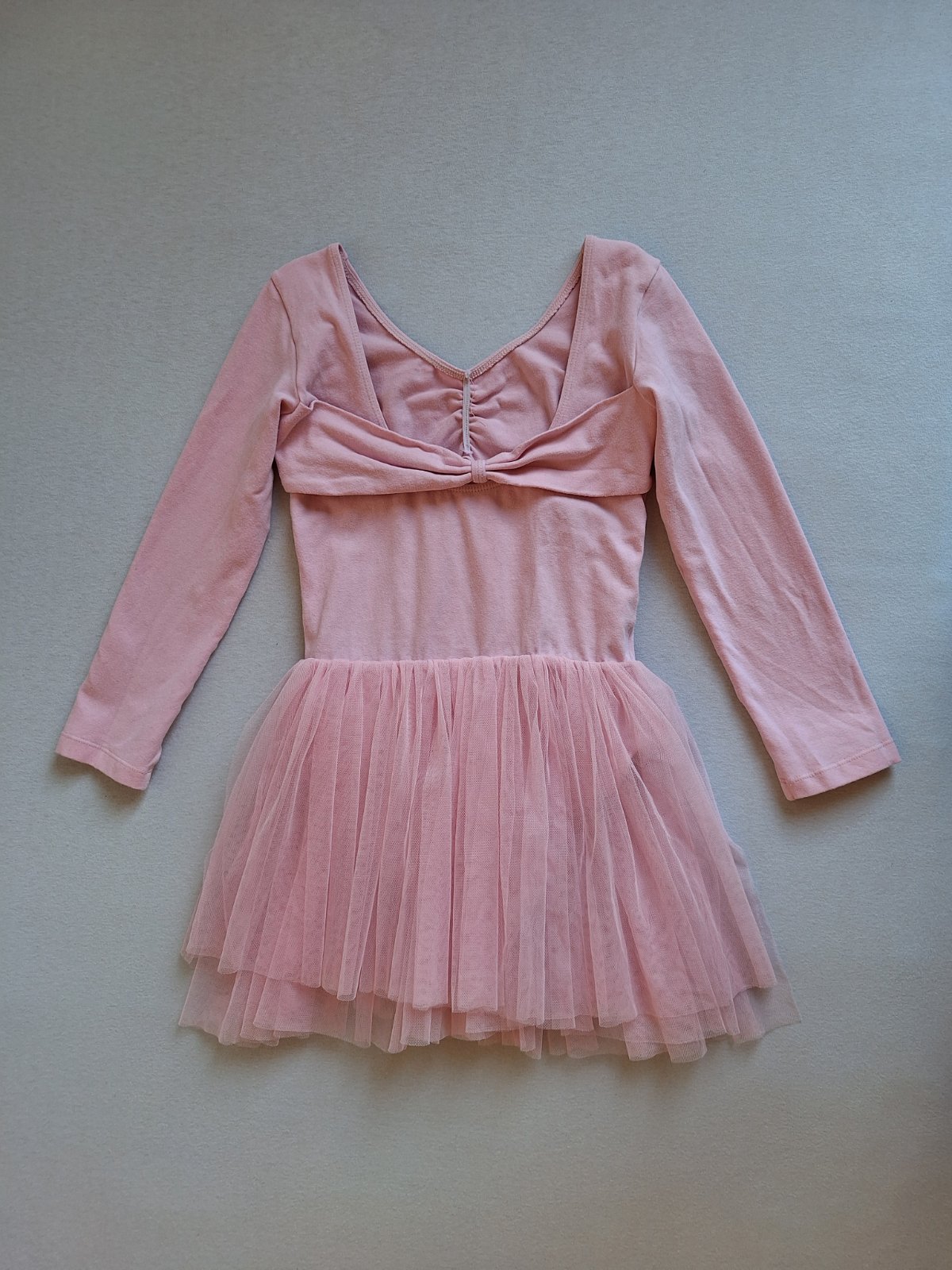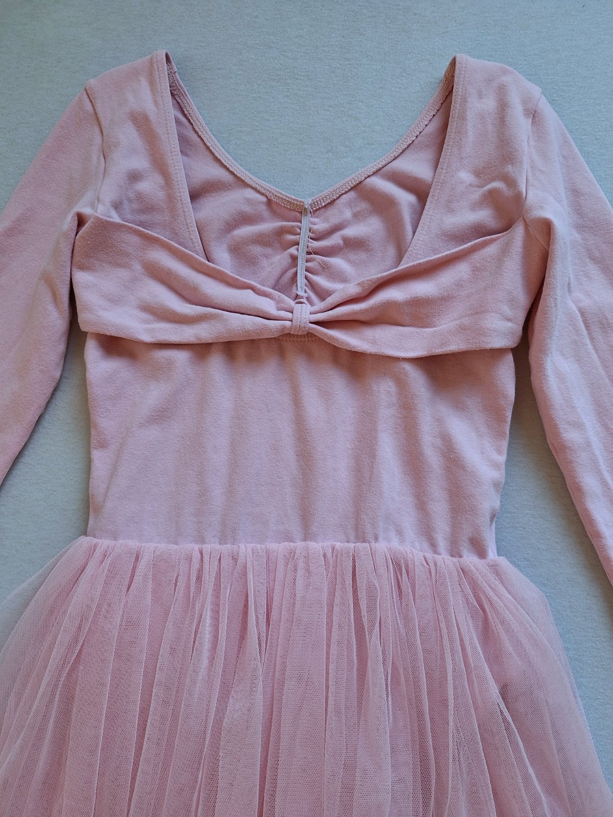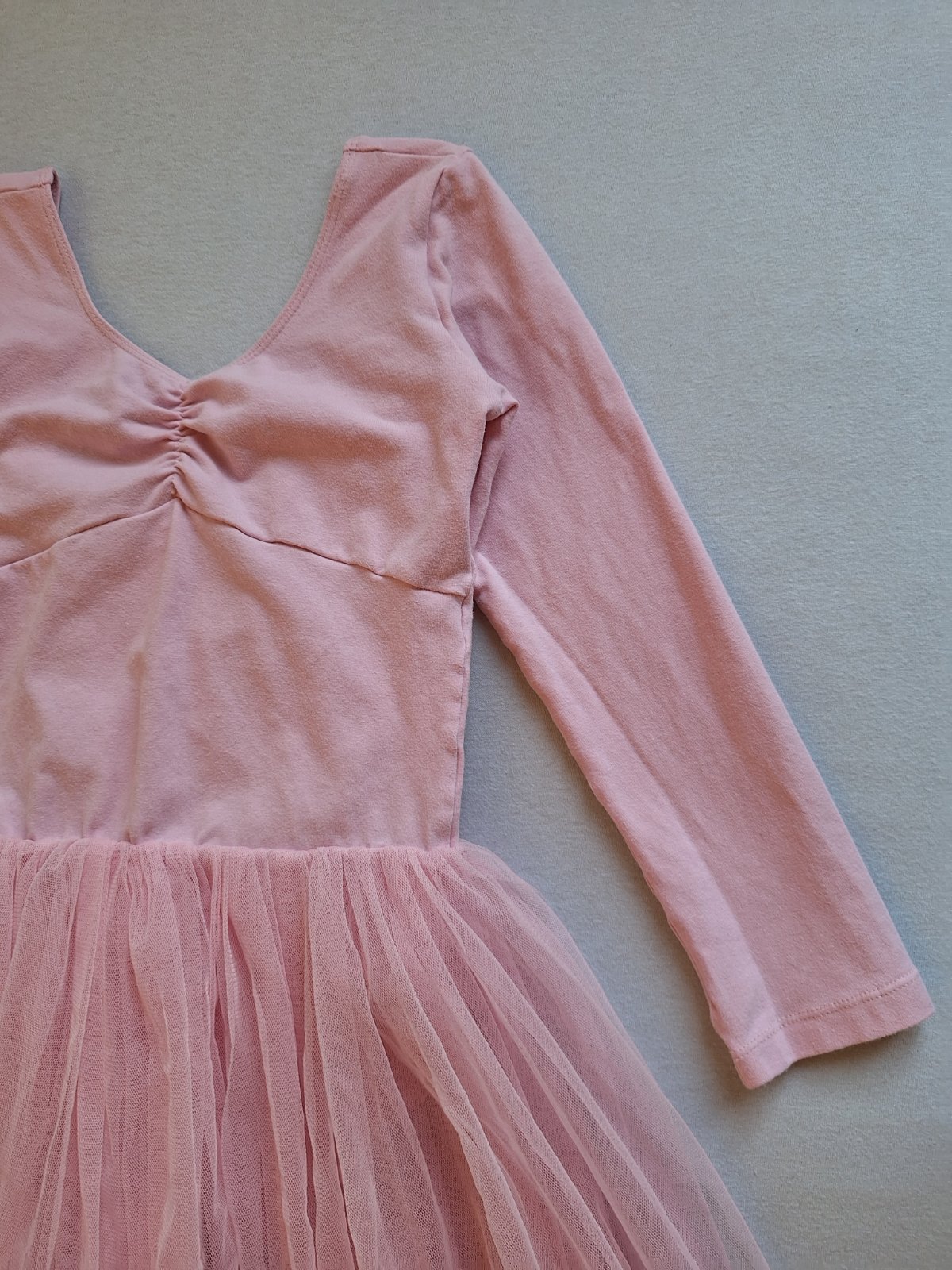 Vhodné ako kostým baletky, tanečnice aj ako dres na tanečnú. Príjemné bavlnené elastické šaty na štýl body (dresu )s bohato nazberanou 3 vrstvovou tylovou sukničkou. Nádherné, bez poškodení, len jemný chĺpok z prania.