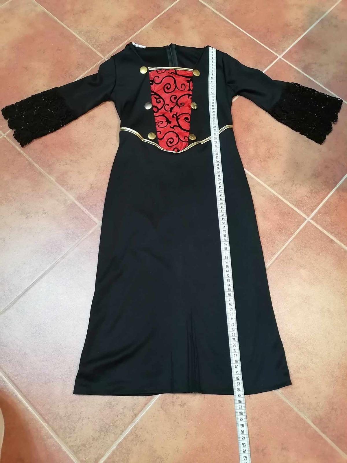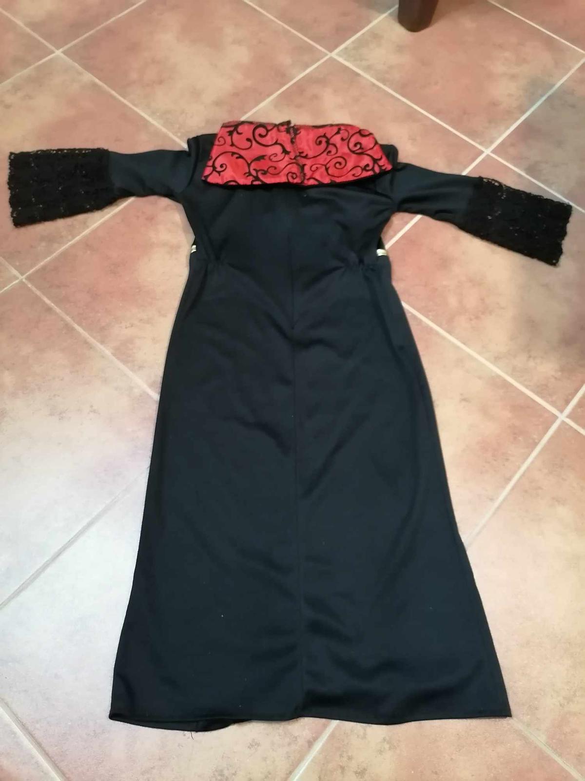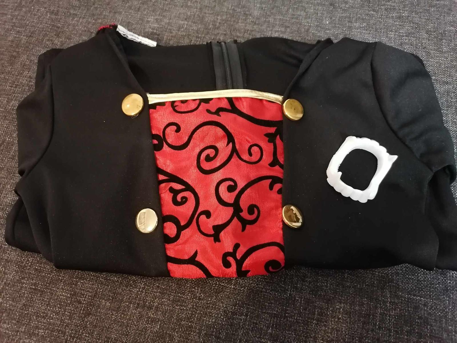 Predám párkrát oblečený kostým upírky :) vpredu na suknici je vidiet na látke pár "vláčikov", dcérka sa zrejme niekde zachytila. v cene aj biele vkladacie upírske zuby (vid 6-ta fotka). cena bez poštovného