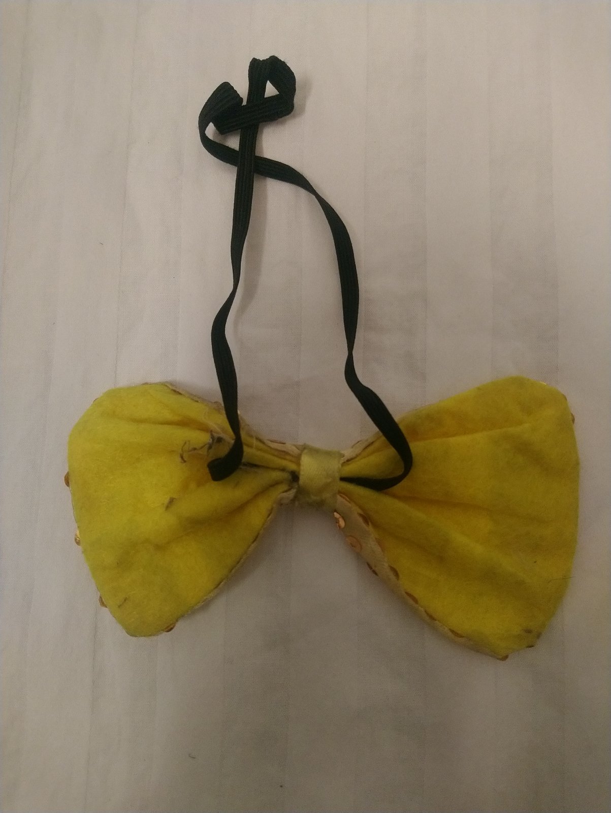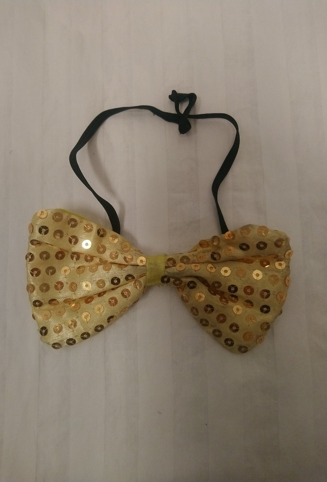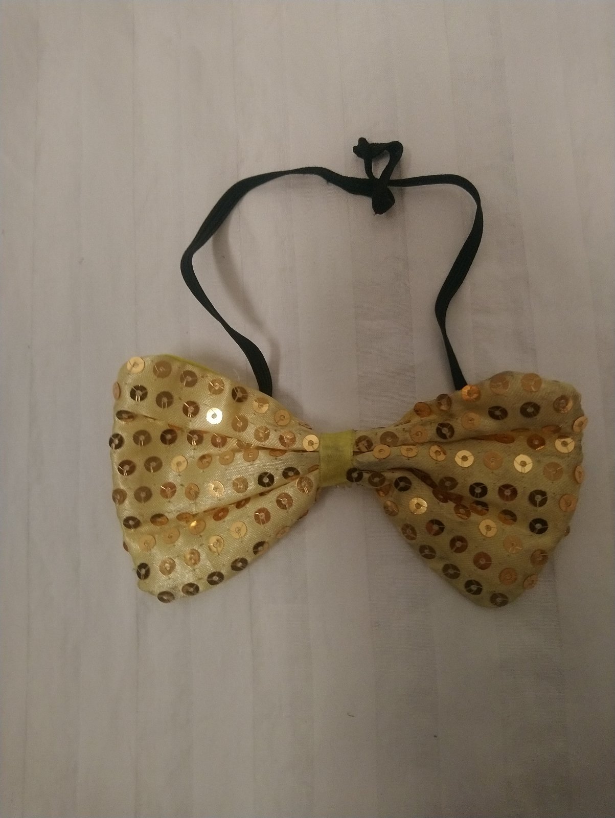 Doplnok kostýmu zlatý motýlik s flitrami, je trblietavý, s upevnením na gumičku,