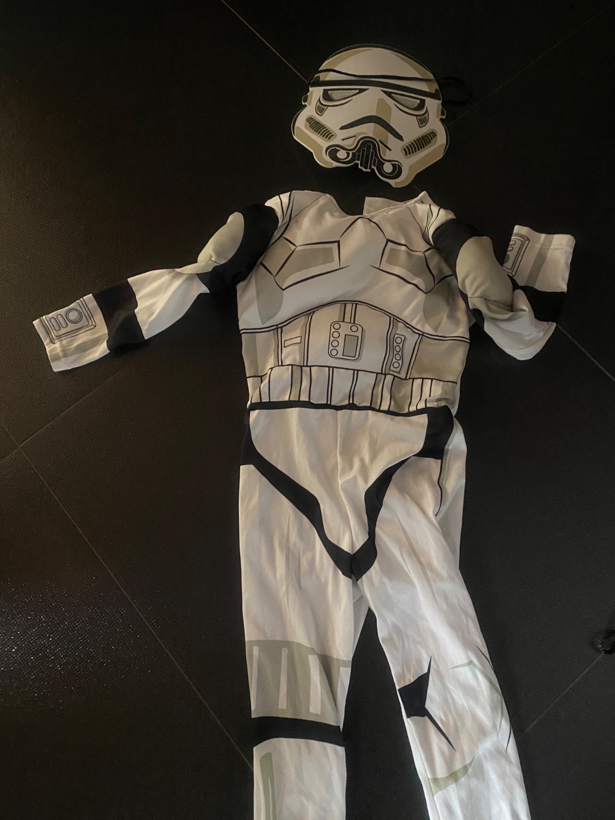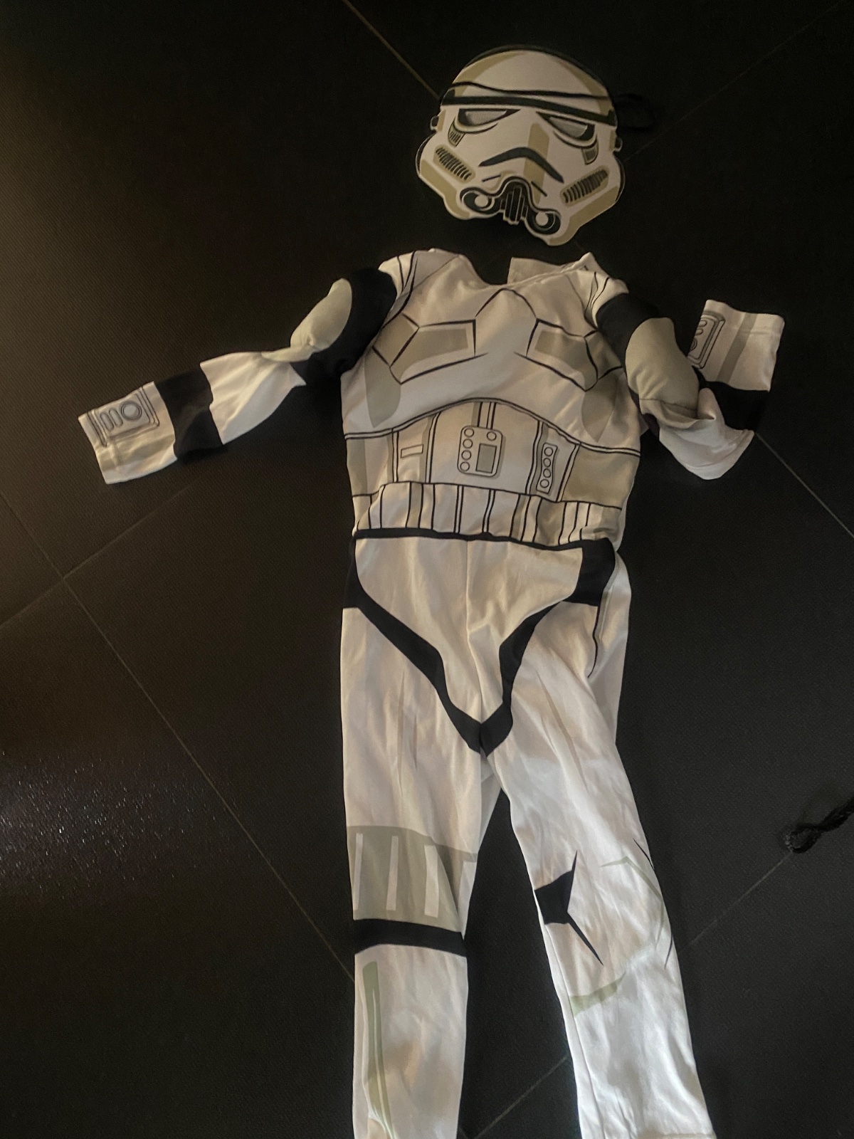 Veľkosť 5-6 rokov, 2 diely, spolu aj s maskou. Dlžka 67cm