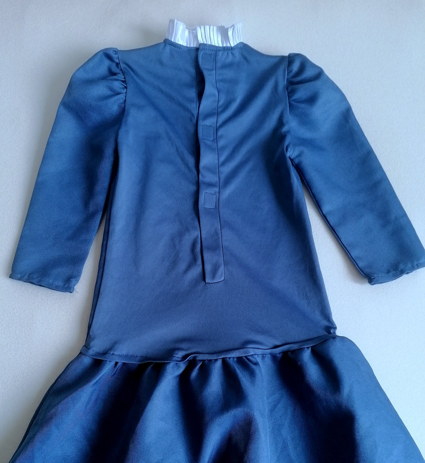 Parádne šaty Mary Poppins, ale je možné ich využiť aj ako dobový kostým. Zadný diel je elastický so zapínaním na suché zipy, pekne sadnú a prispôsobia sa postave. Parádne šaty, bez poškodení.