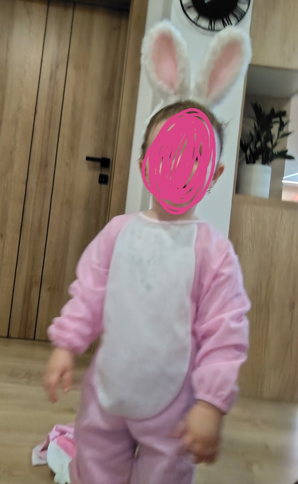 - originál pri maske bola zajkova čiapka, ktorá sa zapína na suchý zips. Ja som ešte dokúpila zajkovu čelenku, ktorú zdarma pribalím k objednávke.