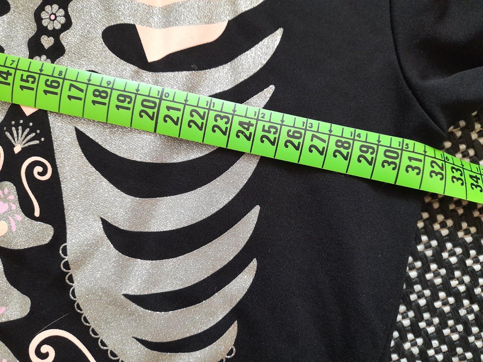 Noseny, zachovaly. Dlzka od ramena po spodok 75 cm, obvod pod pazuchami 2x 40 cm. Velkost pisana S, dcera na foto mala 11 rokov, na obvod sa este v pohode zmestila, len uz jej kratsi, kedze meria 1...