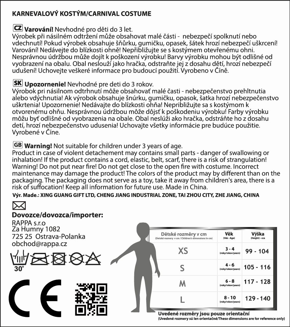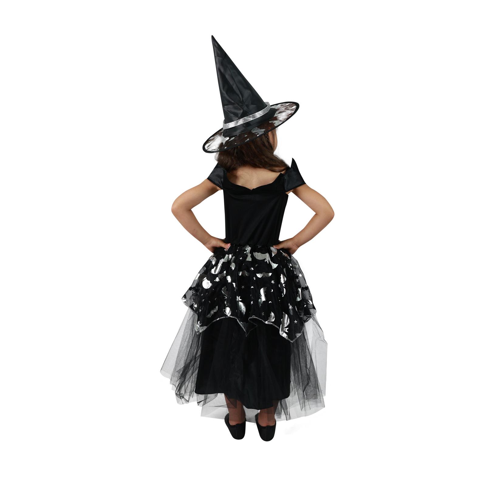 Kostýmček o veľkosti M je určený pre dievčatká vo vekovom rozmedzí 6-8 rokov (117-128 cm). Čierne šaty s nadýchanou sukňou sú zdobené striebornými prvkami a strieborným lemovaním. Súčasťou balenia je aj perfektne zladený klobúk, ktorý je tiež zdobený striebornou stuhou. Staň sa hviezdou karnevalového večierka vďaka tomuto kostýmu! Vhodný aj na oslavu Halloweenu.