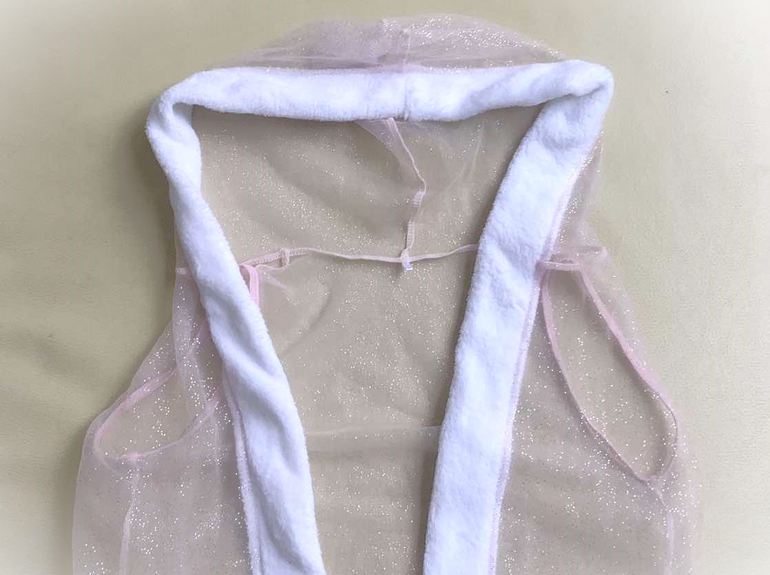 kostym-plast pre princezne, v peknom, malo nosenom stave, je bledoružový so striebornými trblietkami.