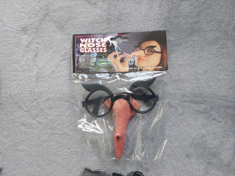 Stav: top stav, bez poškodení a známok nosenia. Zelené pavúčikové šaty - živôtik zamatový, v páse guma, bohato zdobené. Čierny klobúk a nové okuliare s nosom.