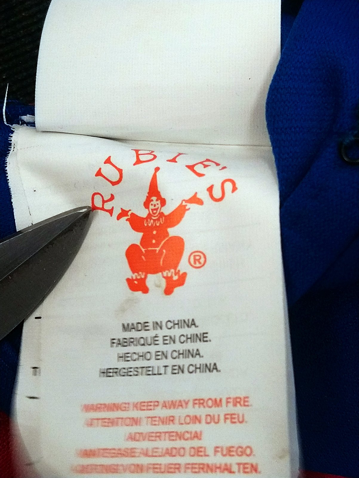 overal v celosti s vytvarovanými svaly a opasok napevno so zaväzovaním, s návlekmi na topánky, overal sa zapína vzadu hore na suchý zips a na chrbte háčikmi, k overalu je na ramenách napevno prišitý plášť,