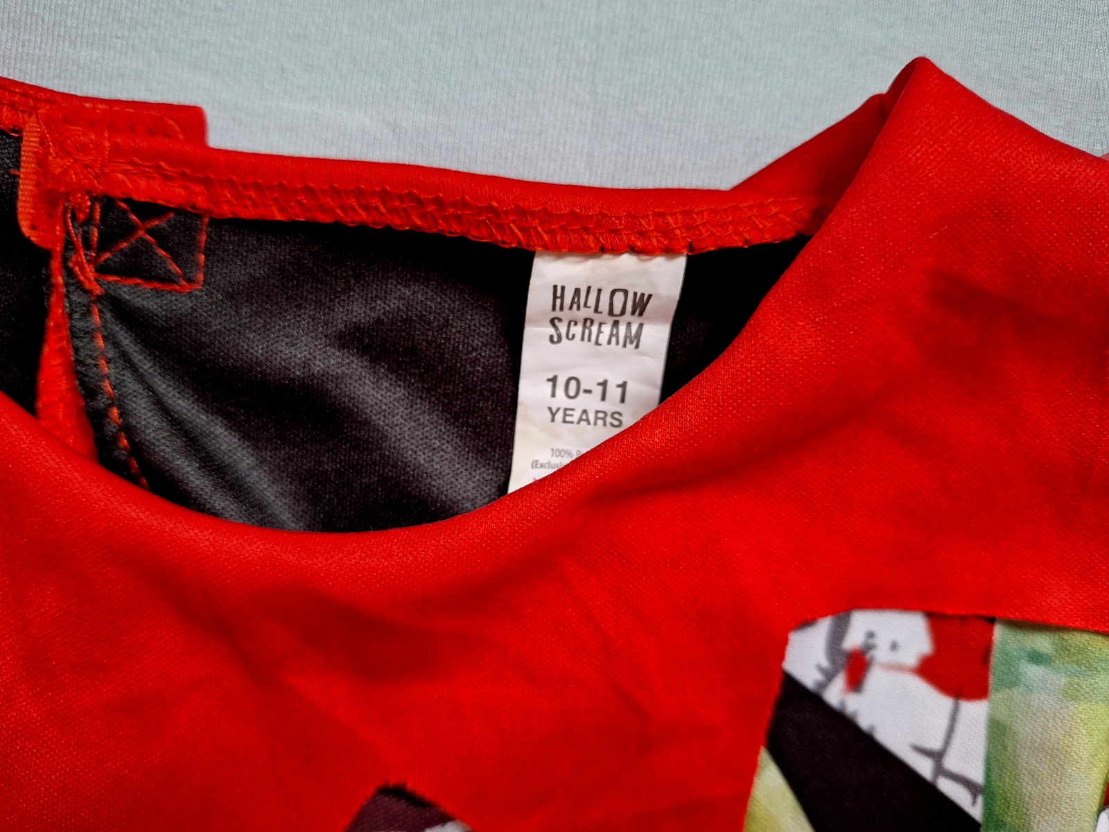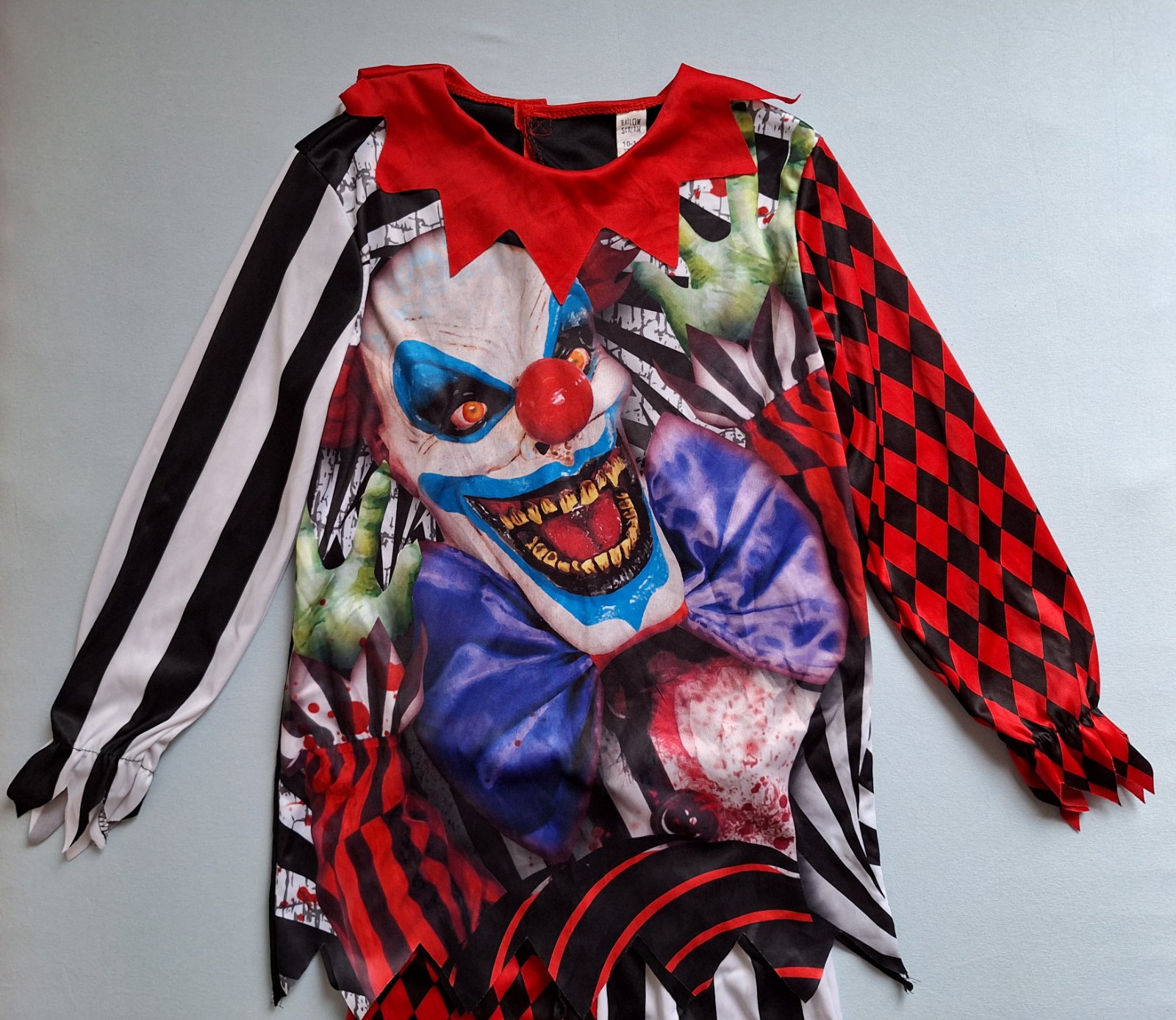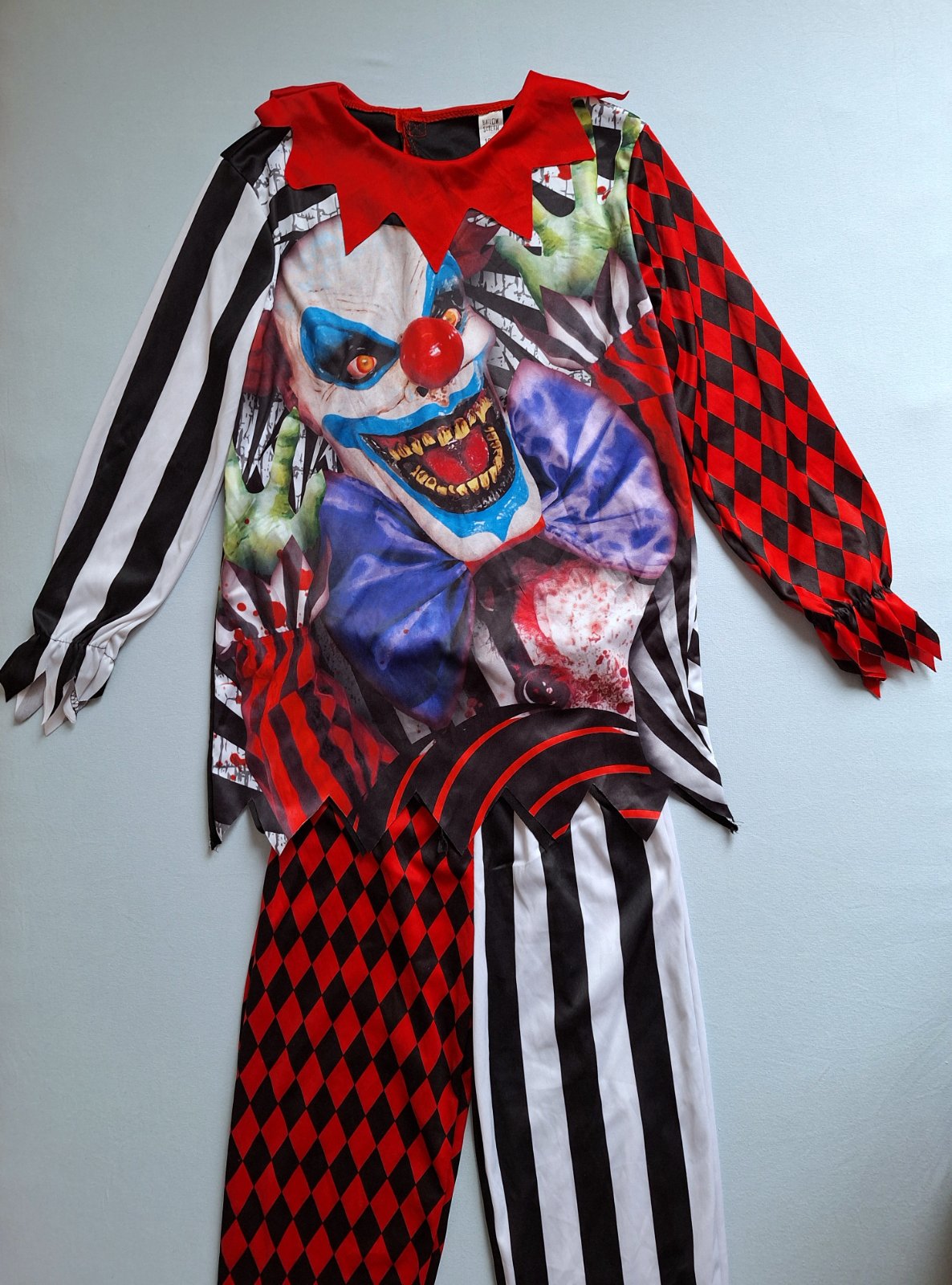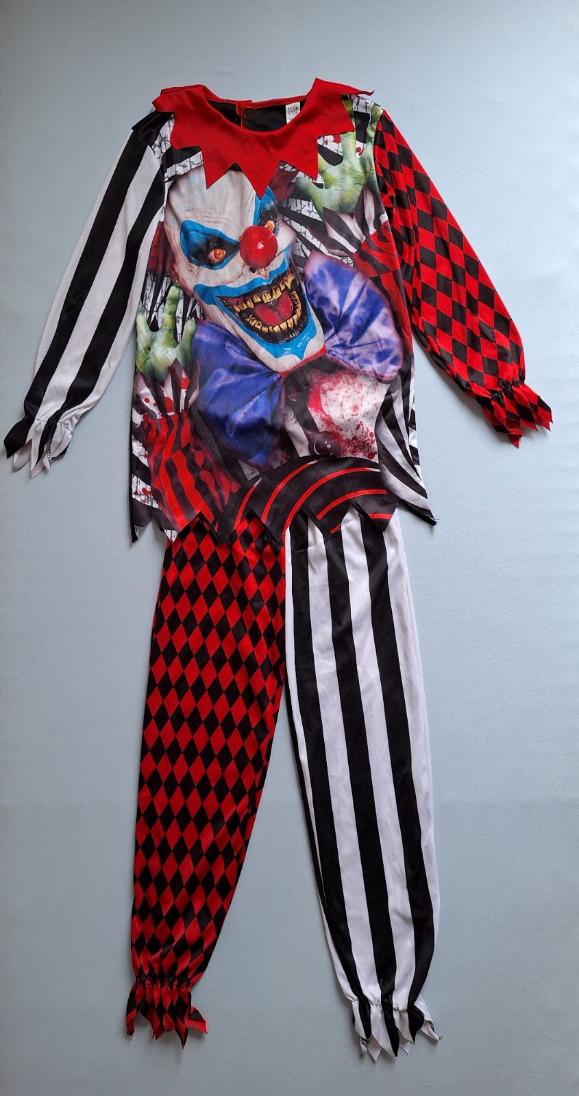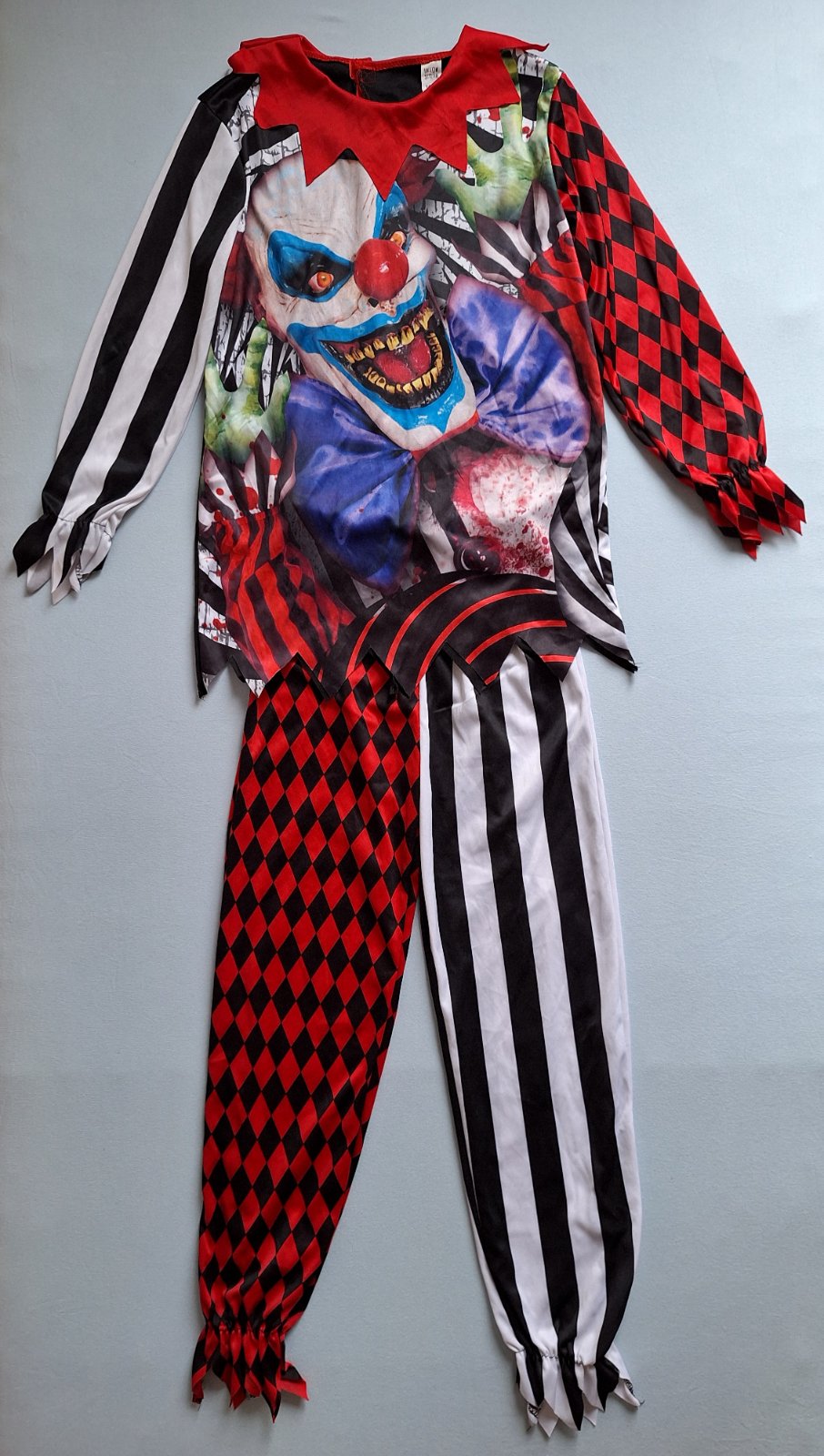 2-dielny kostým je v TOP stave bez poškodení, veľmi pekný, vhodný aj ako dar. Pozostáva z vrchného dielu a nohavíc do gumy. Na vrchnom diely obrázok Jokera. Mierne elastický, príjemný na telo.