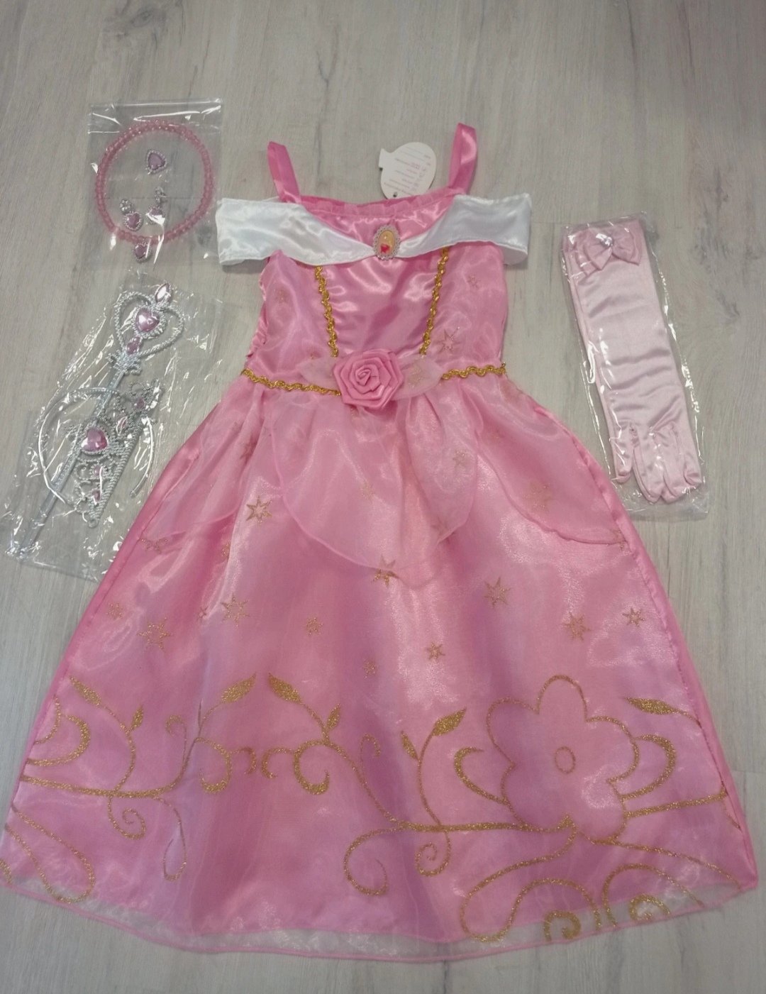 veľký 6 dielny set: rukavice + korunka a žezlo + náhrdelník, prsteň a náušnice 11,90,-