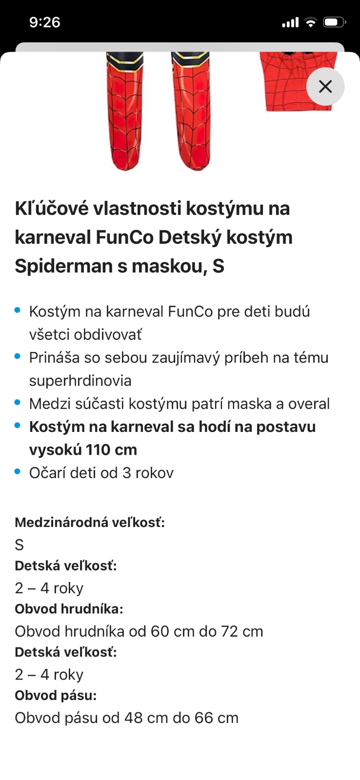 Súčasť kostýmu tvorí maska a overal. Je prispôsobený pre postavy s výškou 110 cm. Kostým je ideálny pre deti od 3 rokov a svoje využitie nájde nielen na karnevaloch, ale aj v bežnom dni, kedy spestrí napríklad návštevu u kamarátov.