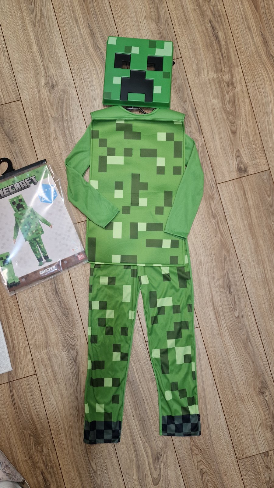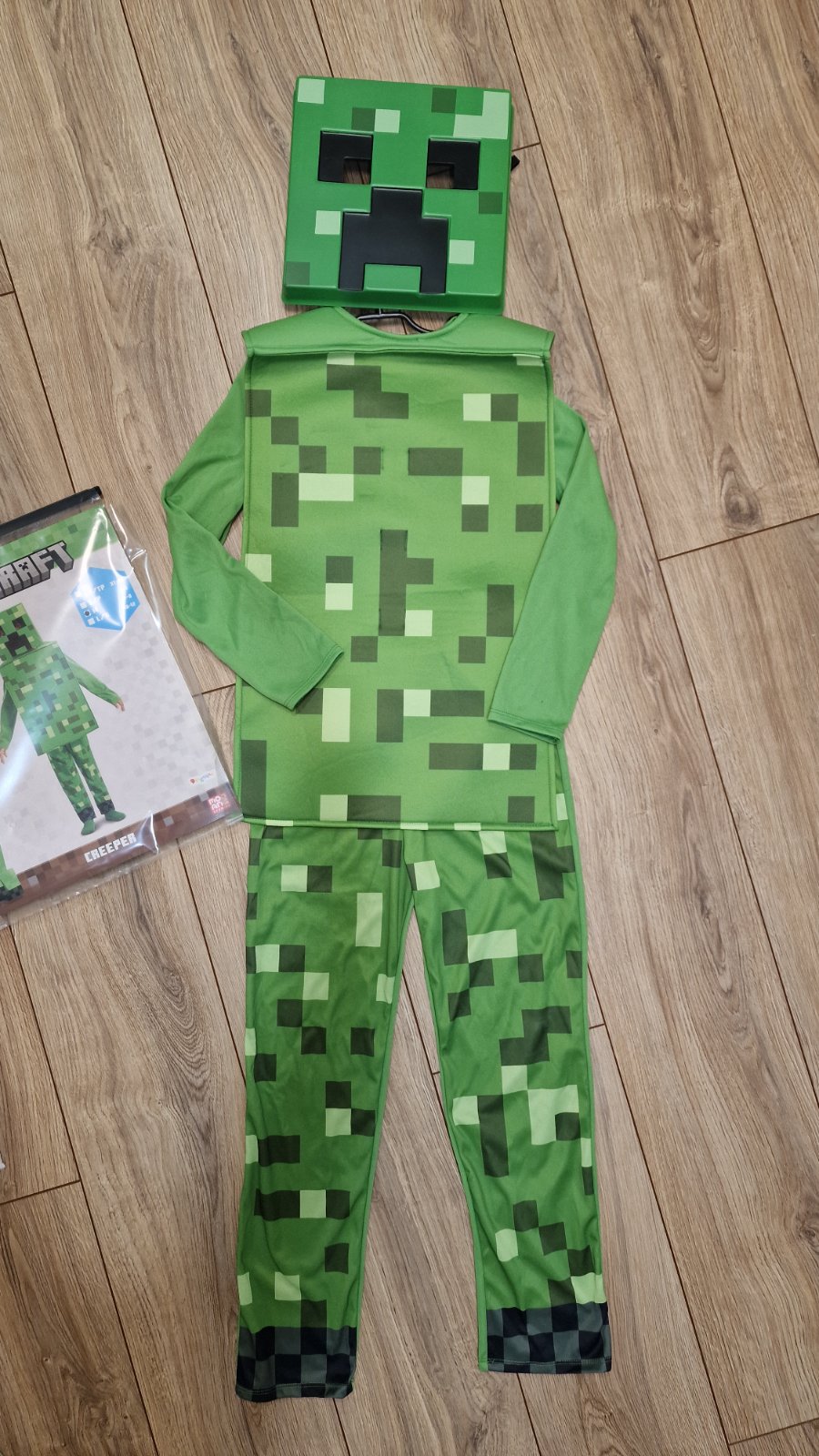 Predam kostým Minecraft Creeper vel. M: 127-135 cm (7-8 rokov), ale uz aj od 6 rokov. Overal+maska. Oblečeny 1x.