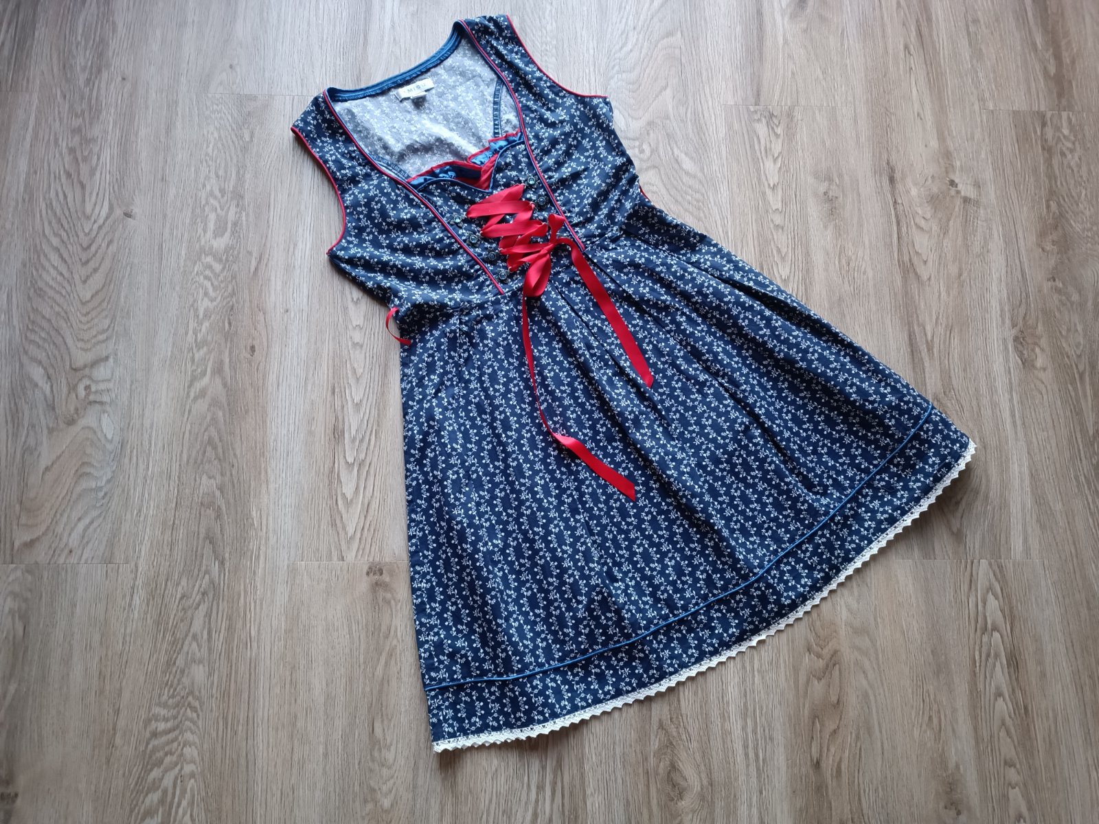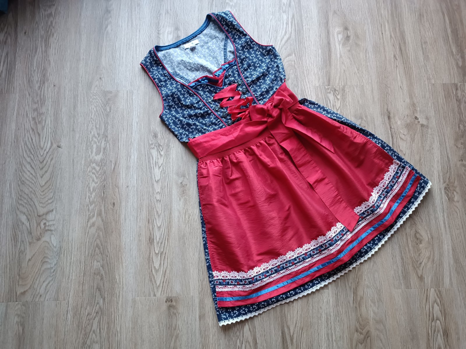 Predám tento bavorský kroj DIRNDL veľk. 38, zn. Amisu, kroj pozostáva zo šiat a zásterky, predná časť je zdobená stužkou, zapína sa zboku na zips.