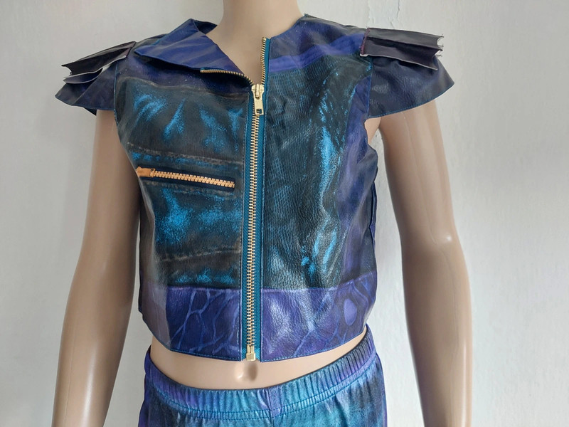 Stav: top stav, bez poškodení. Deluxe kostým, na motívy rozprávky Descendants - Potomkovia. Dvojdielny - pevný vrchný top (imitácia kože) + mierne elastické nohavice s gumou v páse. Deluxe kostým z dielne Disney Store.