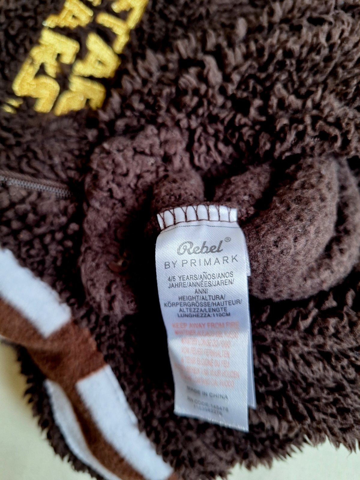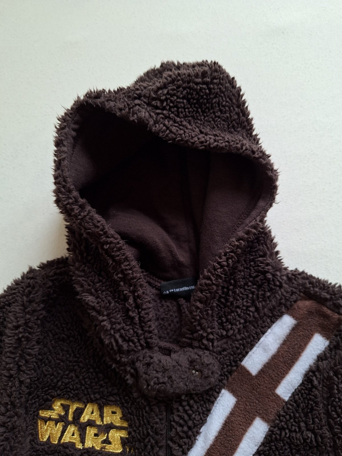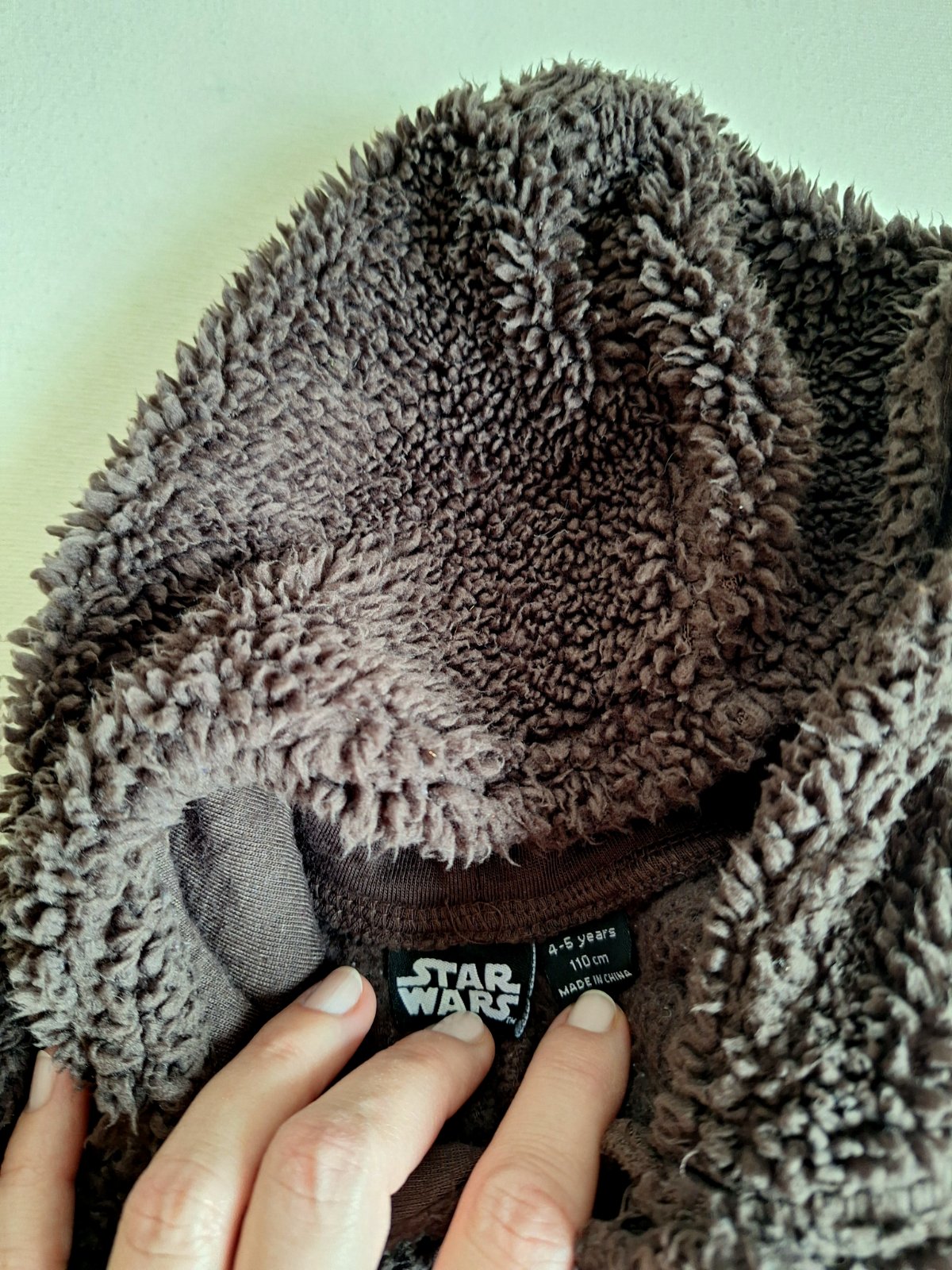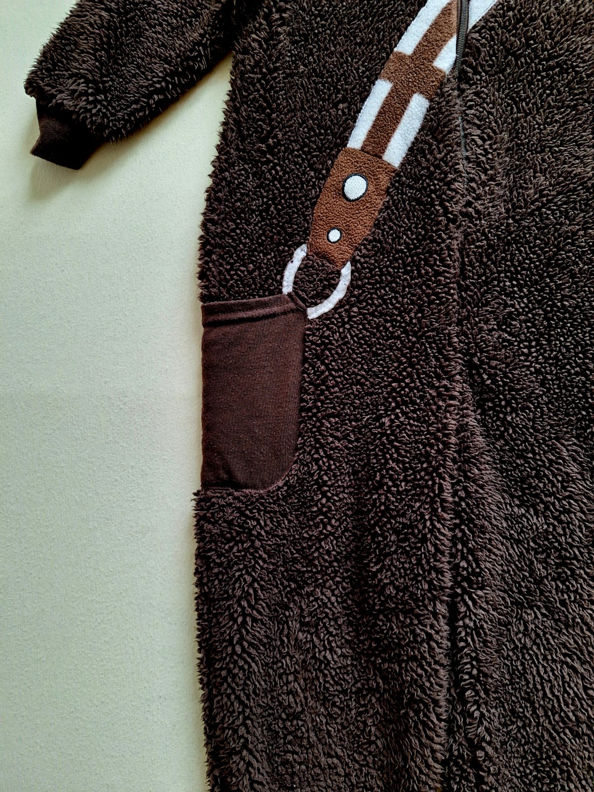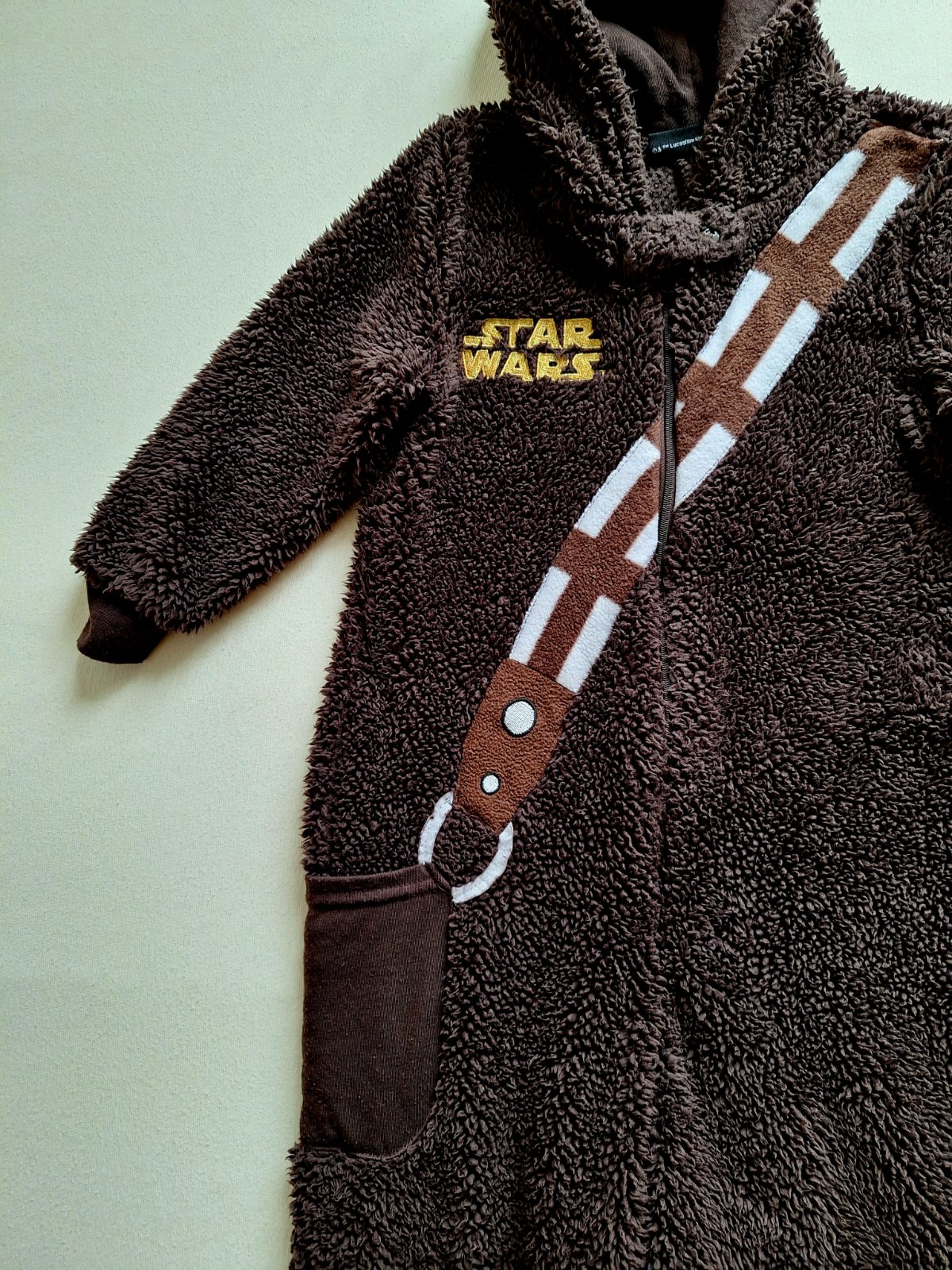 Vhodný na karneval aj ako teplejšie domáce oblečenie. Pekný málo nosený stav bez poškodení. Plyšový kostým fiktívnej postavy Chewbacca z Hviezdnych vojen (IV. epizódy – Nová nádej).