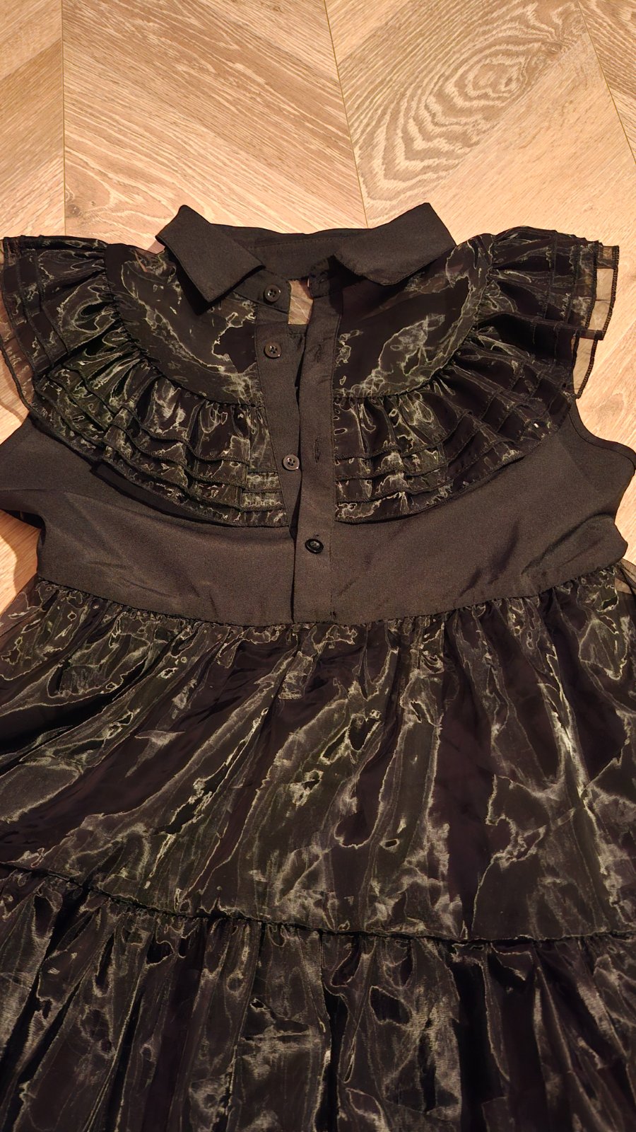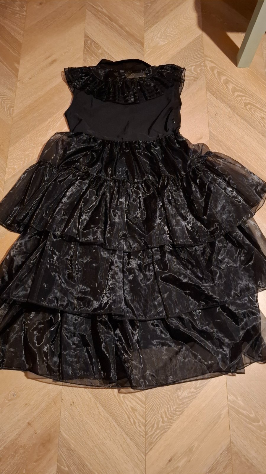 Krásny dámsky kostým Wednesday, oblečený len raz, ako nový. Obsahuje šaty, opasok, parochňu, podkolienky, čelenku, náramok, náhrdelník, náušnice. Veľkosť S, ale šaty sú väčšie, skôr M. Cena 40€ + poštovné.