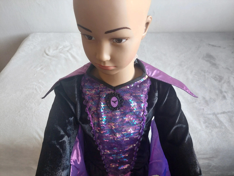 Stav: top stav, bez poškodení a známok nosenia. Deluxe prevedenie kostýmu na motívy rozprávky. Šaty so stojatým golierikom, pod krkom brošňa, celozamatové šaty, v páse guma. Pod rukávami sa upínajú krídla.