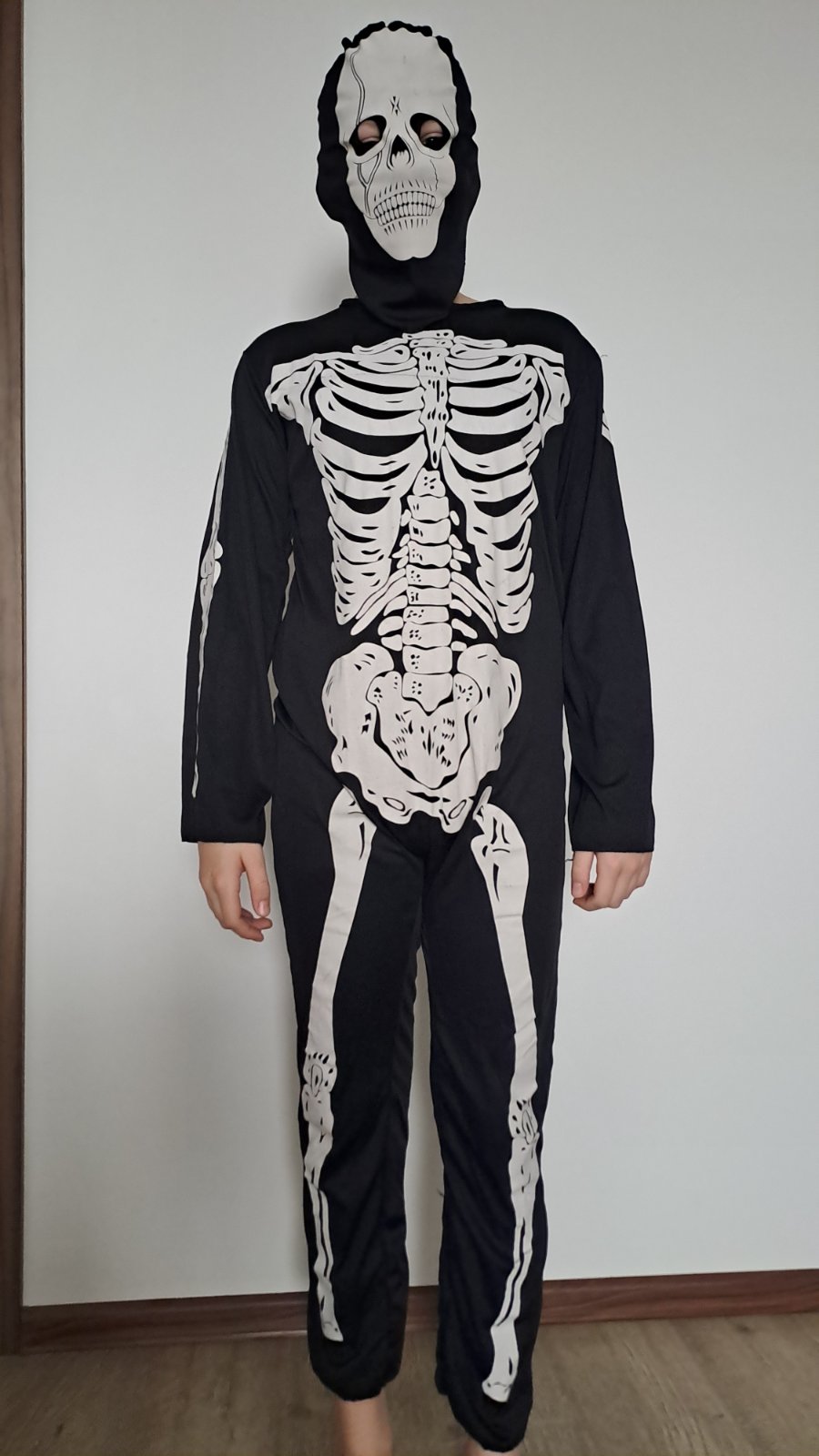 Kostym kostlivca, syn ho mal raz na sebe. Neviem presne cislo, ale syn nasi č.164 a je mu stale dobry. Takze myslim ze od 158-168, pripadne mensie panske S.