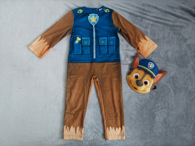 Stav: top stav, bez poškodení a známok nosenia. Karnevalový overal na motívy tlapkovej patroly s imitáciou vreciek, parádny, mierne elastický.