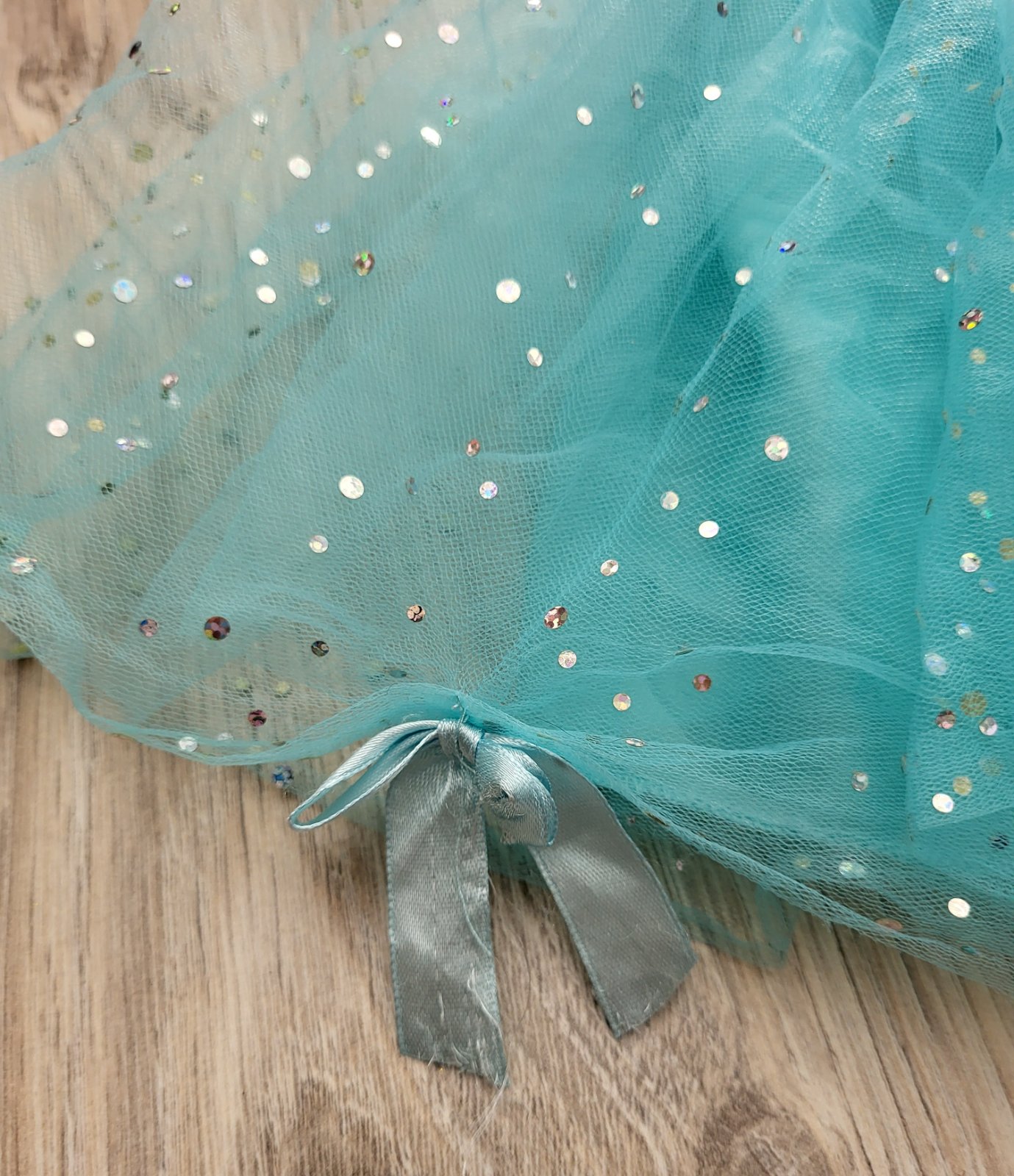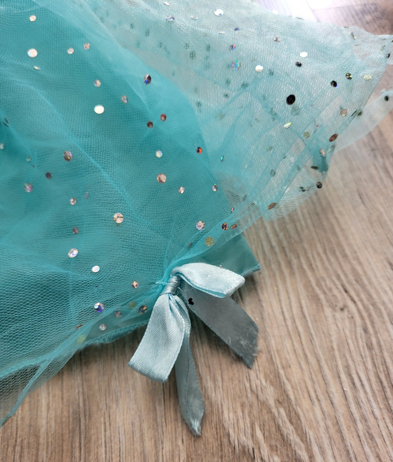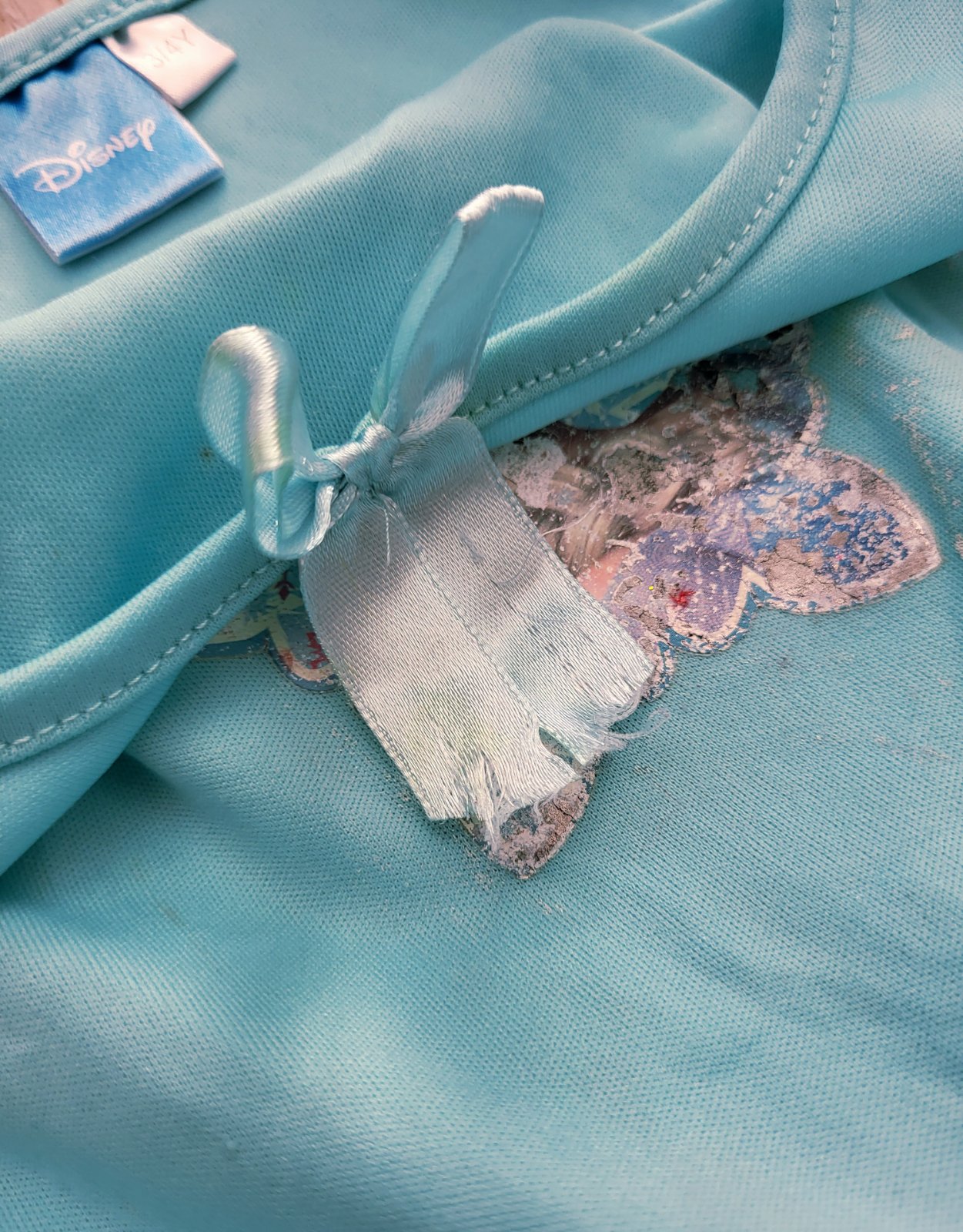 dobrý stav, poškodená potlač Elzy na hrudi, potlač je prenesená na chrbát, miestami roztrhaný tyl na sukňovej časti-viď detail, miestami zatiahnutia v látke, pošlem buď poštou alebo packetou
