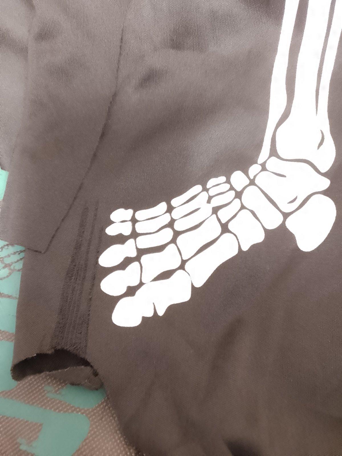 1. čiernu dlhá tunika so strašidelnými rukávmi a bielym motívom kostry, zapínanie vzadu na suchý zips,