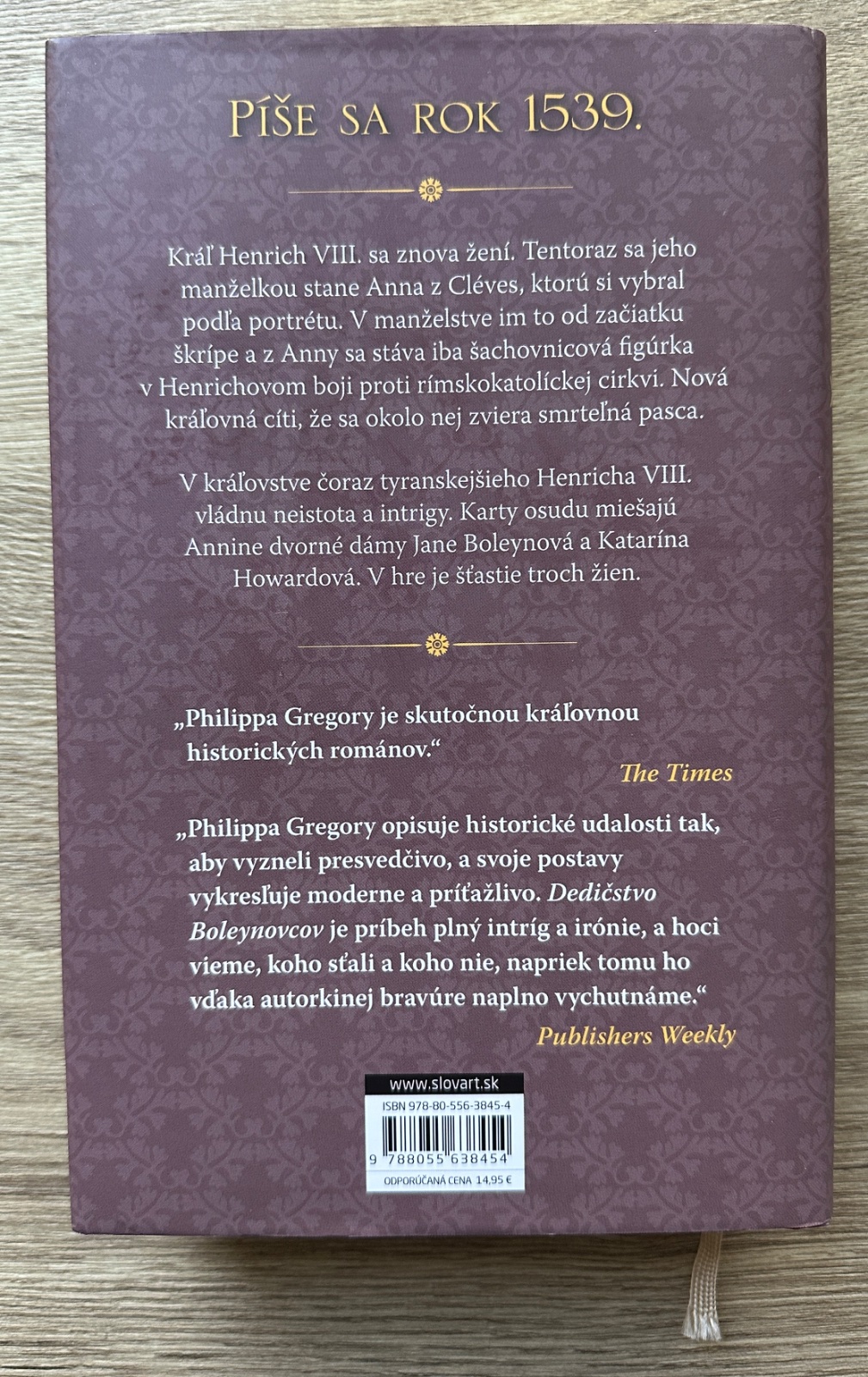 ORIGINÁLNY NÁZOV:The Boleyn Inheritance,POČET STRÁN:518,VÄZBA:pevná väzba s prebalom,ROZMER:145×230 mm,HMOTNOSŤ:771 g,JAZYK:slovenčina,PREKLAD:Otakar Kořínek