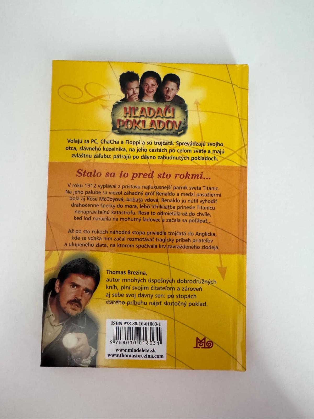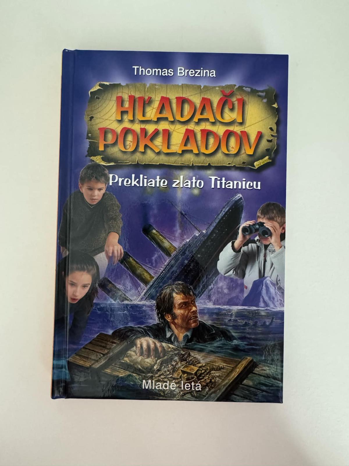 Kniha Hľadači pokladov - Prekliate zlato Titanicu. Kniha je v dobrom stave s miernou chybou výroby, s ktorou sme ju už dostali (viď. foto). Autor: Thomas Brezina.