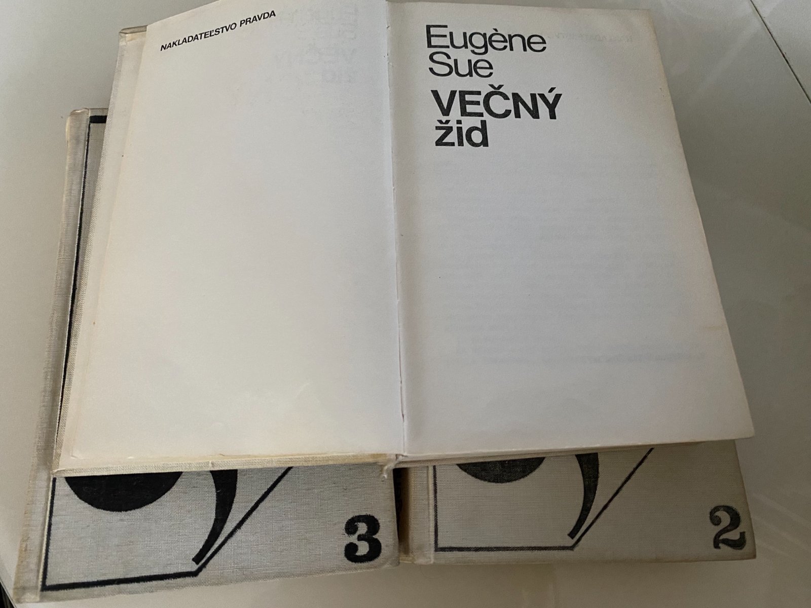 Historický román francúzskeho autora v troch zväzkoch. Za rámec svojho rozprávania si vzal legendu o večnom Židovi, ktorá je alegorickým vyjadrením židovskej diaspory. Pridal mu však aj spolupútničku Herodiadu, ktorá tiež blúdi svetom až do skonania vekov, pretože si žiadala hlavu Jána Krstiteľa. . Poštovné podľa cenníka pošty.