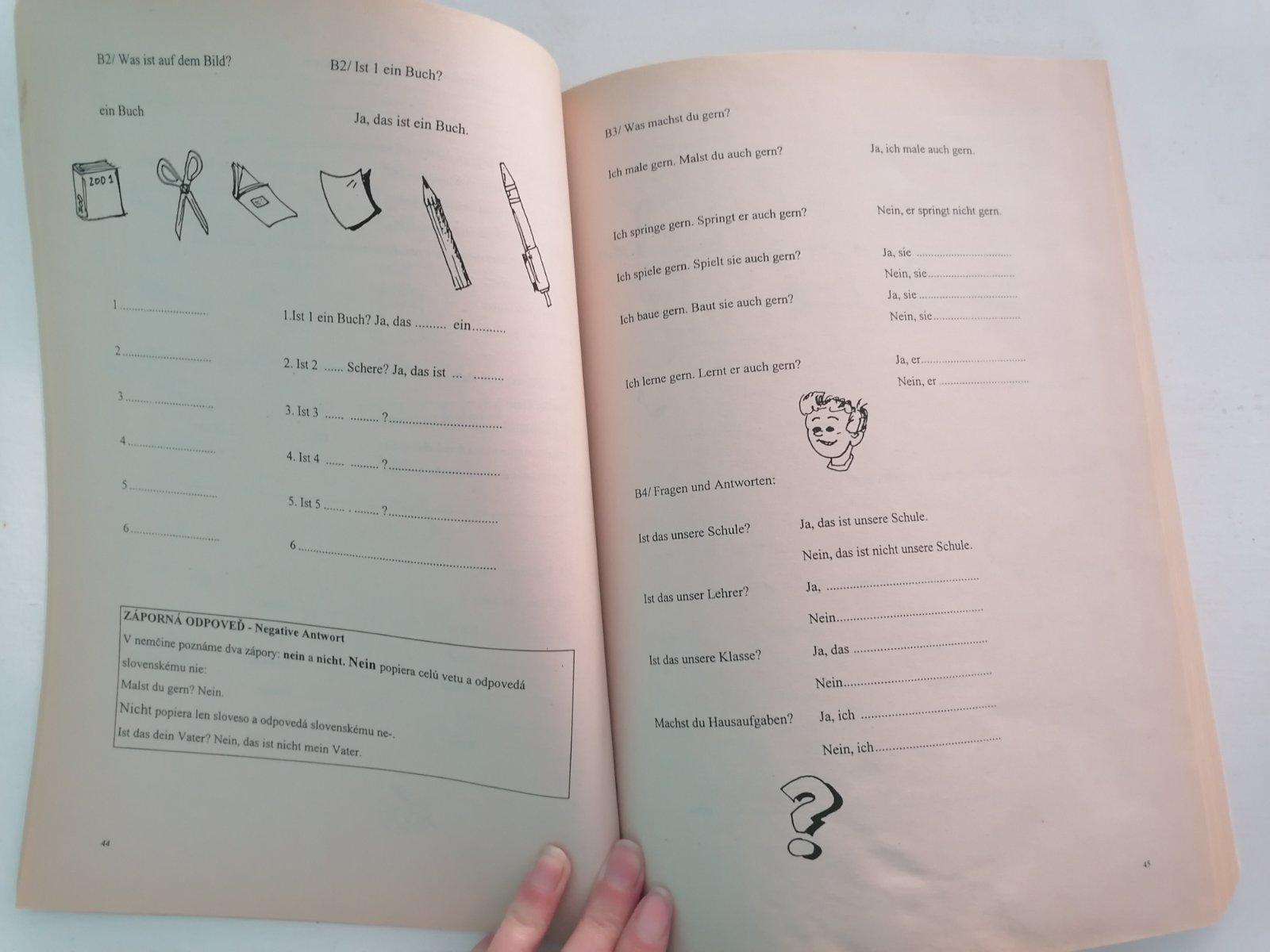 Učebnica nemčina hrou, formát A4, vrchná stránka je trošku popísaná, vnútro nie.