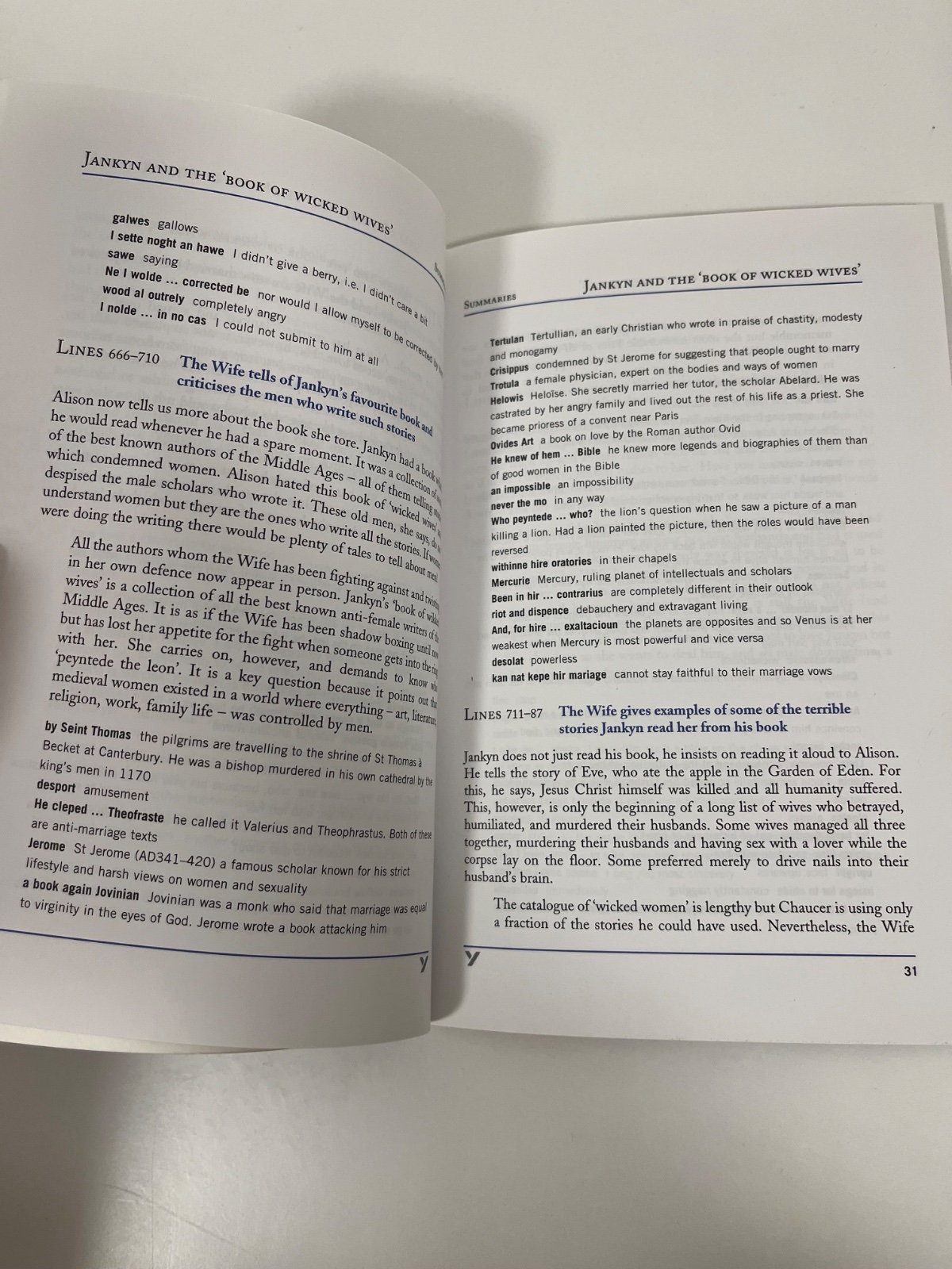 Kľúčové témy: Detaily o Jankynovom "Book of Wicked Wives" (ako vidno na fotke) a stredovekých debatách o pohlaví a moci. 📜