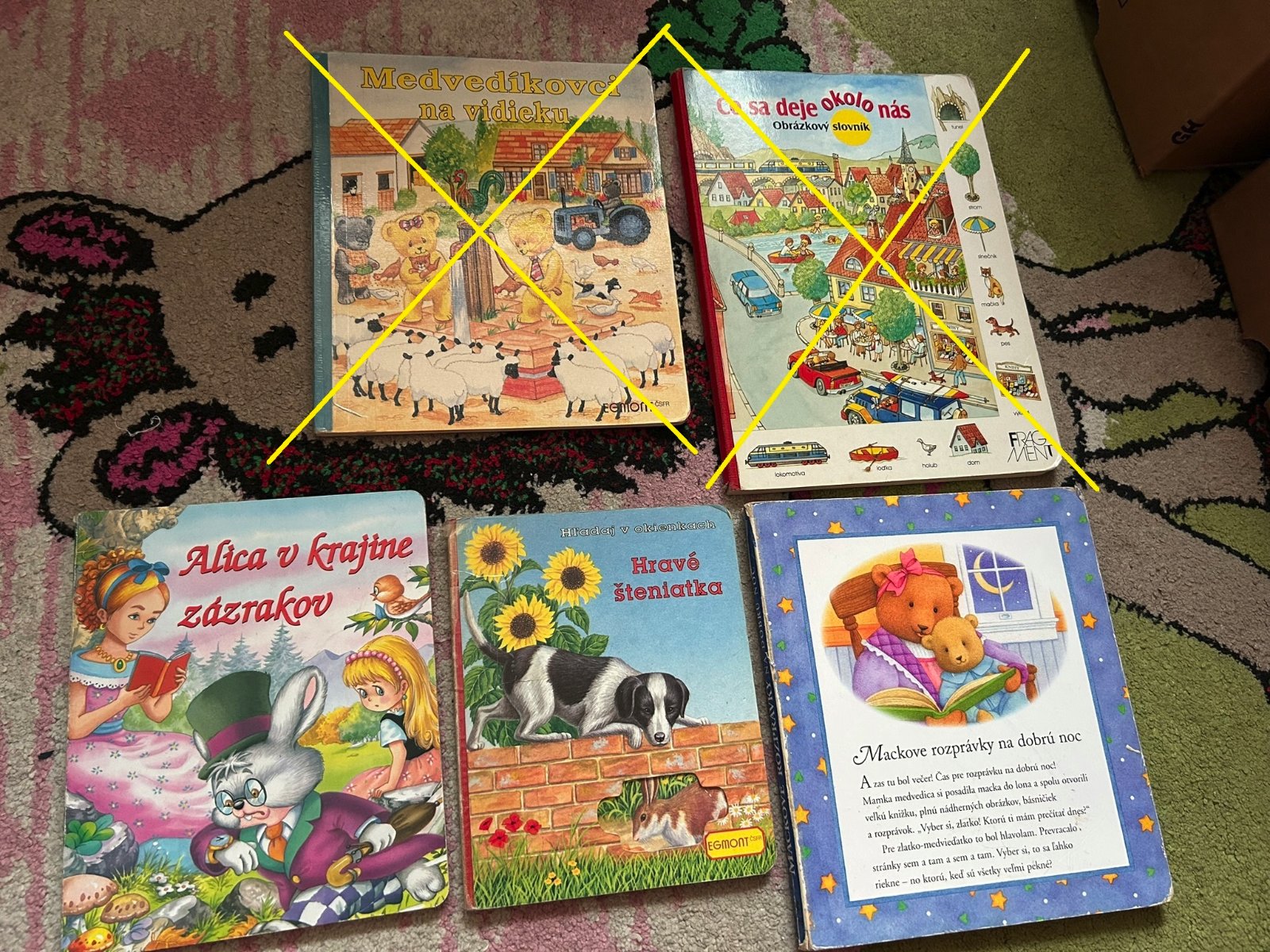 sada 3 ks knižiek s tvrdými stránkami, všetky zachovalé, len Hravé šteniatka sú lepené páskou