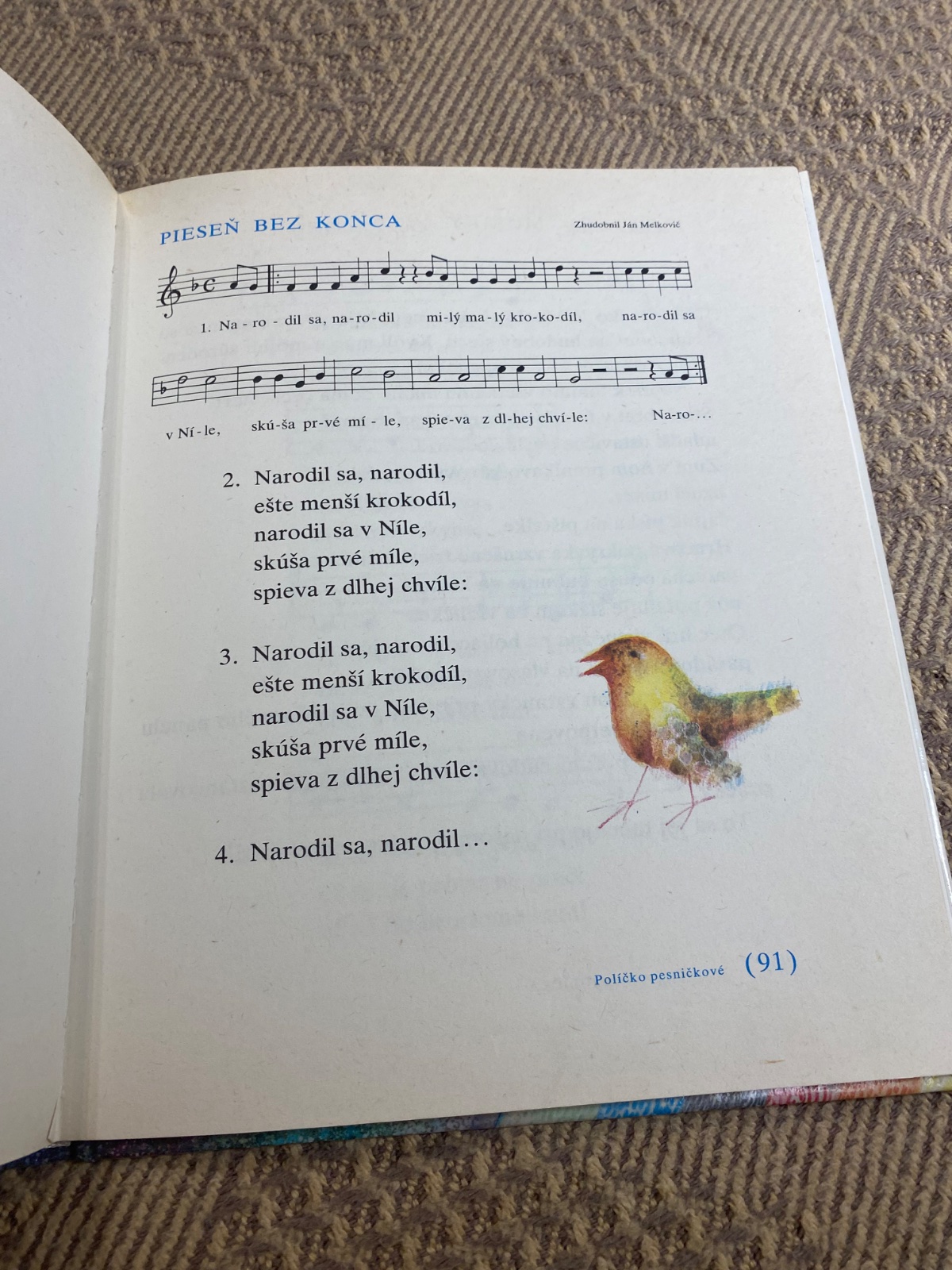 Knižka obsahuje políčko: básničkové, hádankové, rozprávkové a pesničkové