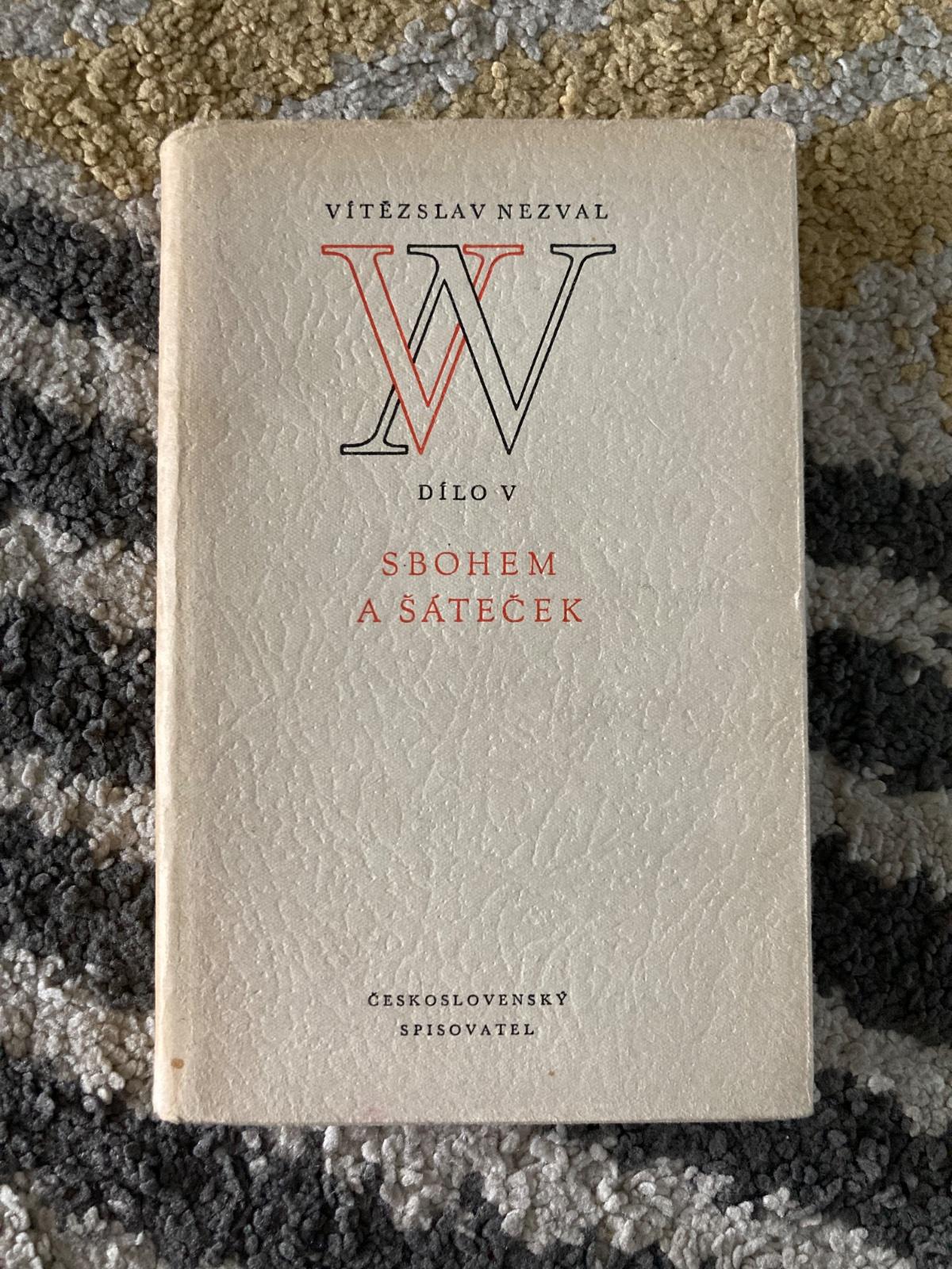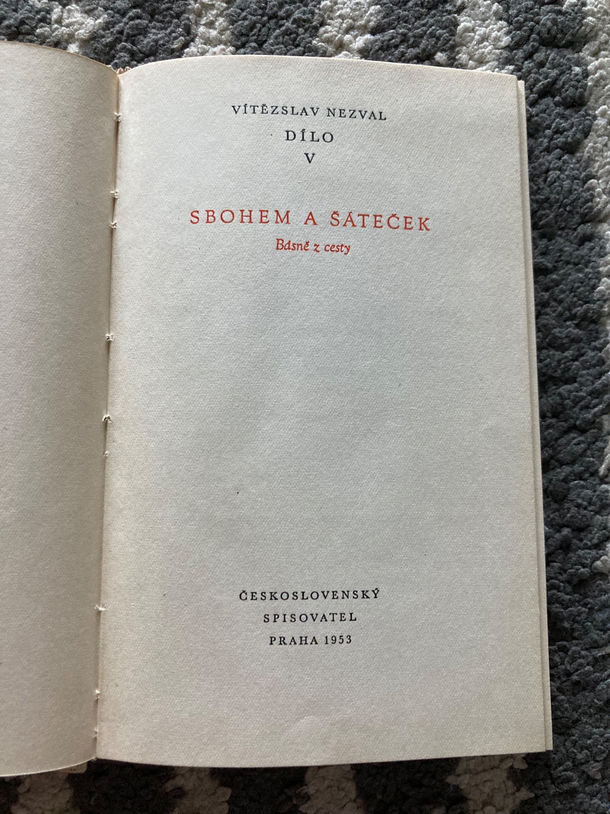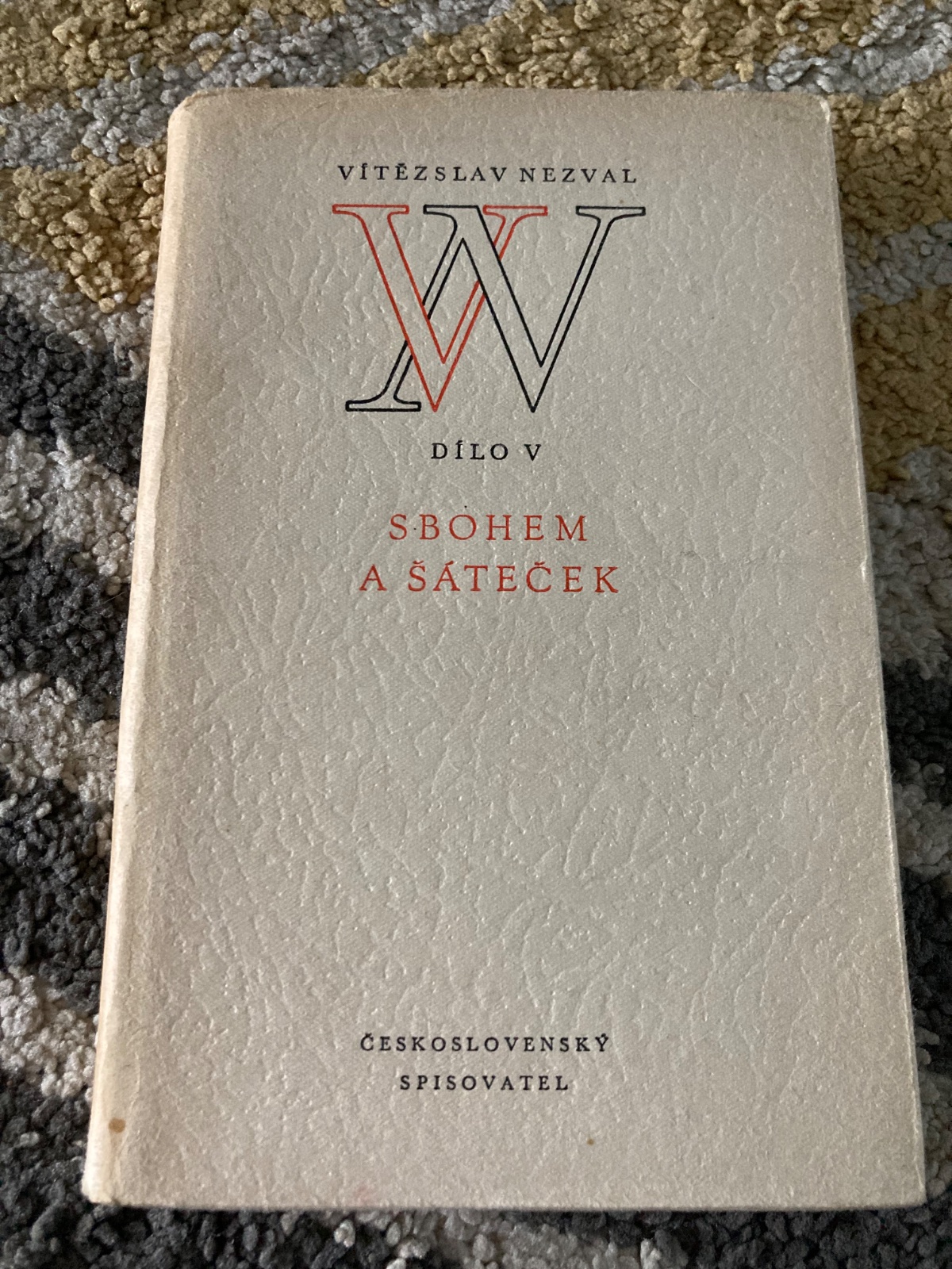 📌 Pátý svazek básnického díla přináší sbírku Sbohem a šáteček s podtitulem Básně z cesty 1933. Je to vlastně básnický zápisník, shrnující dojmy z cesty přes Vídeň, Alpy do Francie, z Paříže přes Středomoří do Itálie a odtud domů na Moravu. Je to nejen básnicky viděný obraz krajiny, momentky ze života Paříže, nahodilosti a zastaveníčka, které Nezval ve svých verších zachycuje, ale i důležitý mezník v tvorbě básníka, který se vrátil z dálek jako věrný a vděčný syn domova.
