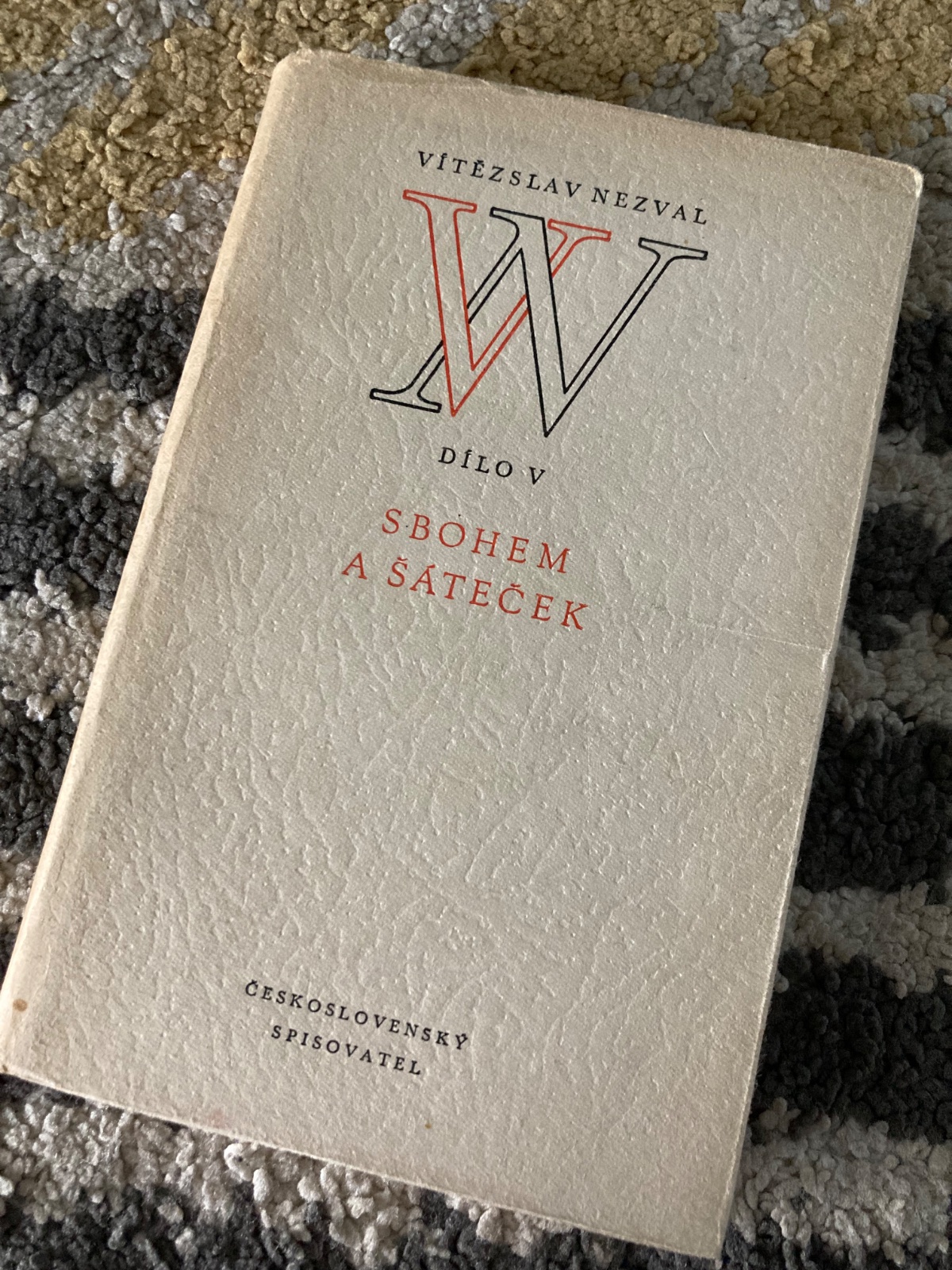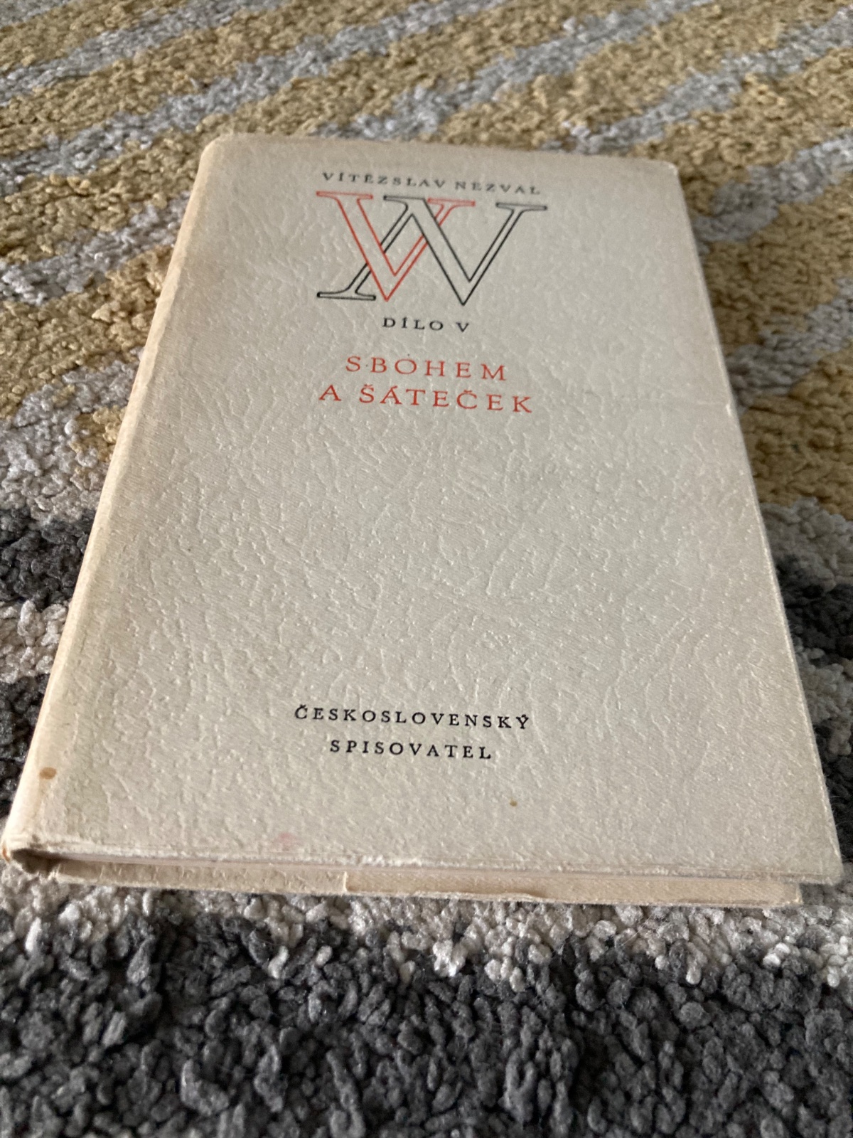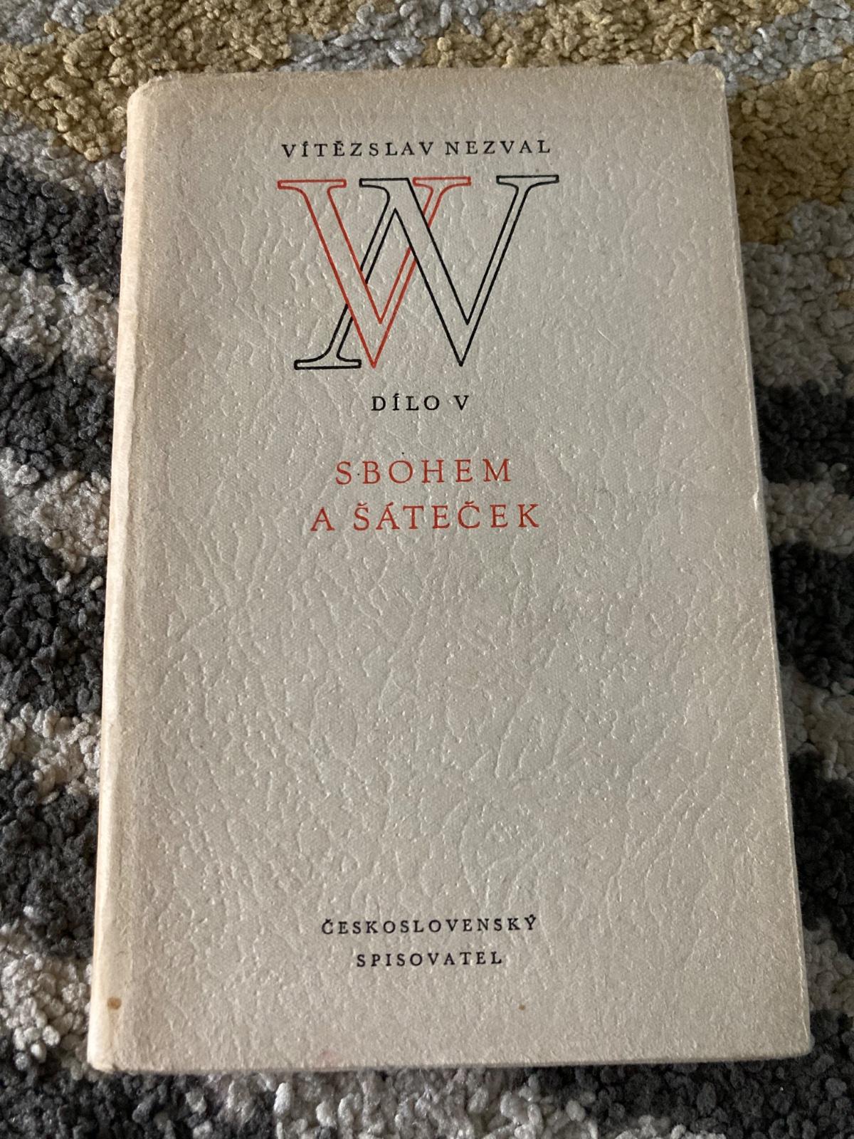 📌 Pátý svazek básnického díla přináší sbírku Sbohem a šáteček s podtitulem Básně z cesty 1933. Je to vlastně básnický zápisník, shrnující dojmy z cesty přes Vídeň, Alpy do Francie, z Paříže přes Středomoří do Itálie a odtud domů na Moravu. Je to nejen básnicky viděný obraz krajiny, momentky ze života Paříže, nahodilosti a zastaveníčka, které Nezval ve svých verších zachycuje, ale i důležitý mezník v tvorbě básníka, který se vrátil z dálek jako věrný a vděčný syn domova.