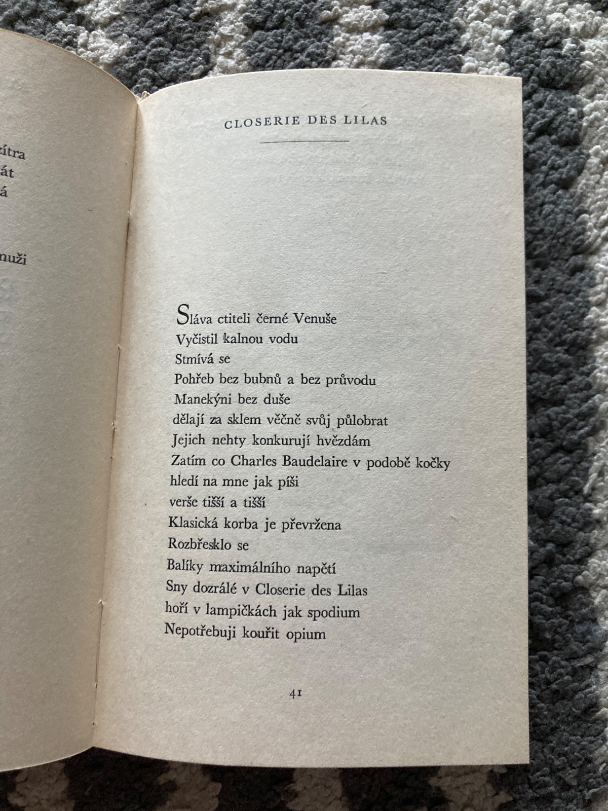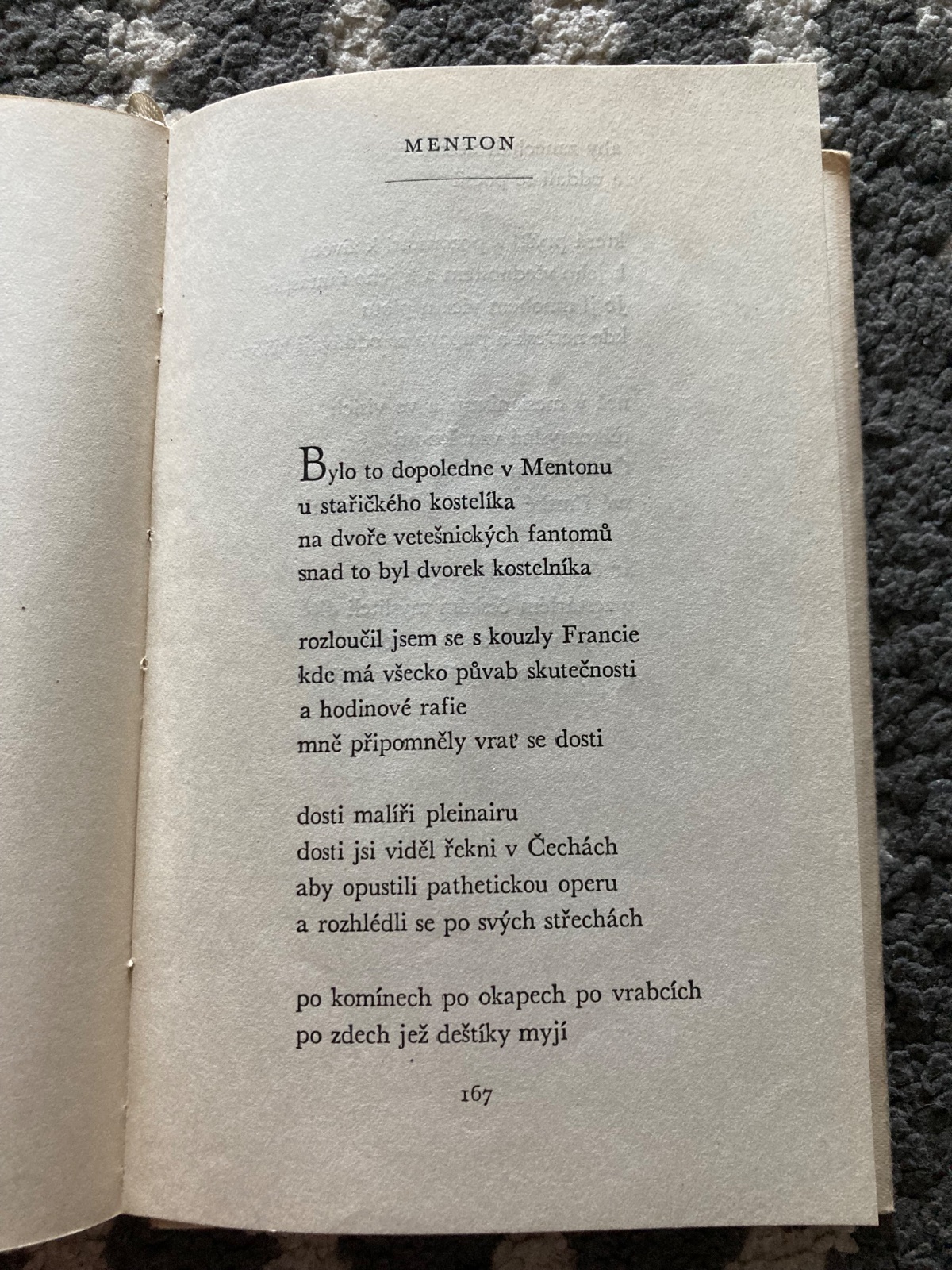 Básně z cesty : Kapesní šátek, Vjezd do Paříže, V Louvru, Bleší trh, Moulin de la Galette, Jízda na mořské vlně, v italském vlaku...